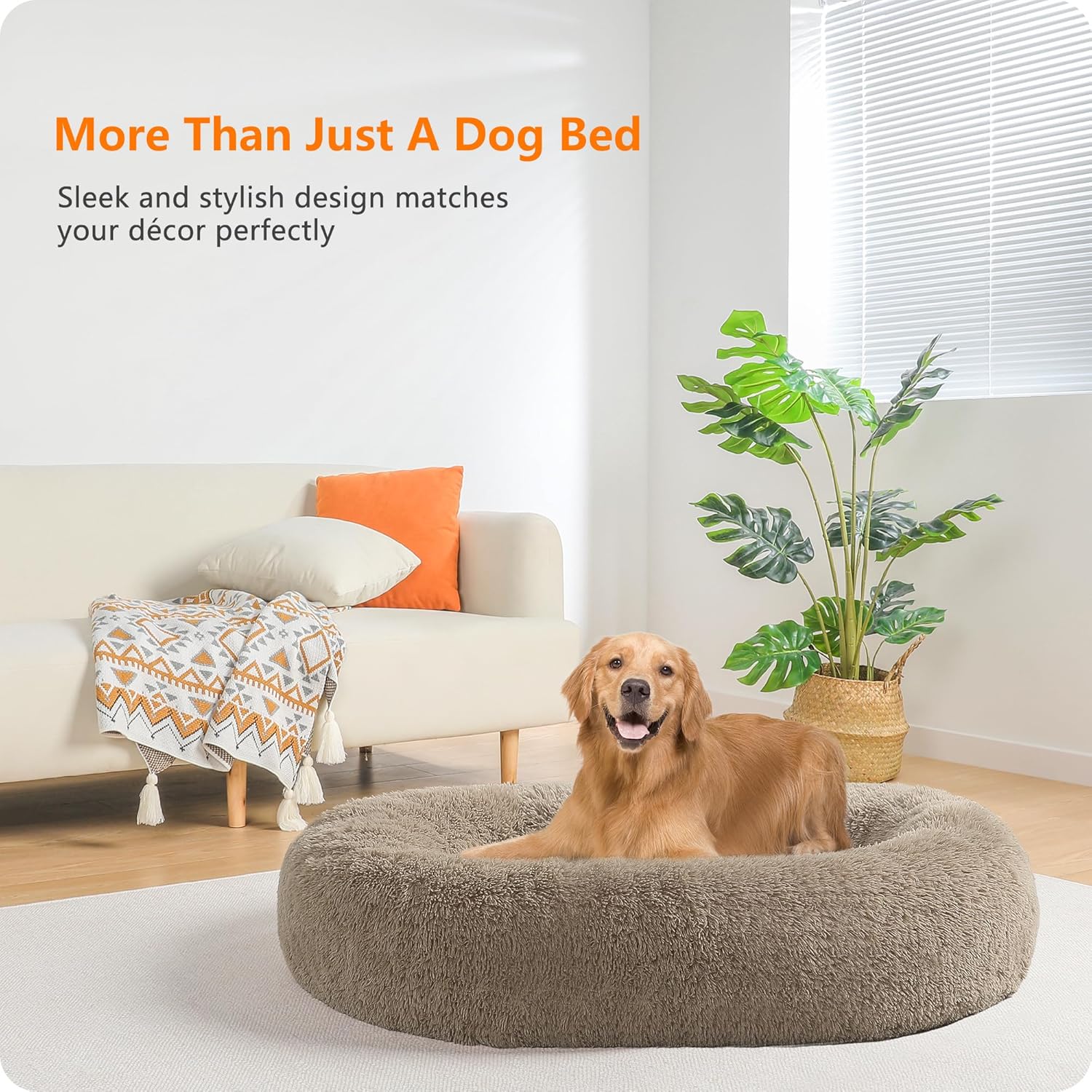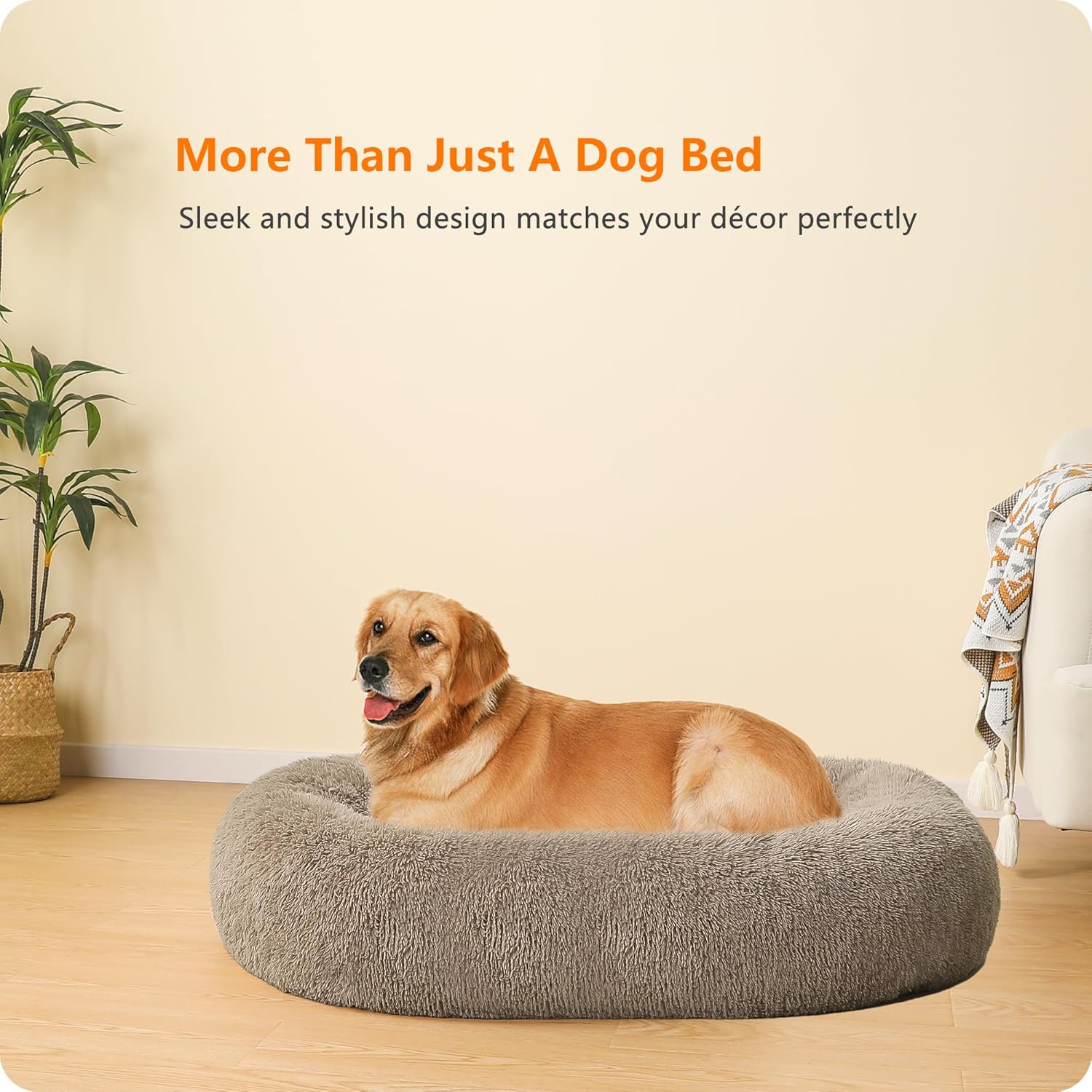 • Противоплъзгащ дизайн: Нашето кръгло легло за кучета е с красиви естествени цветове и здрави шевове в долната част. Дъното на удобното легло за домашни любимци е също водоустойчиво, устойчиво на петна и неплъзгащо се, осигурявайки чиста и суха защита за домашните любимци.