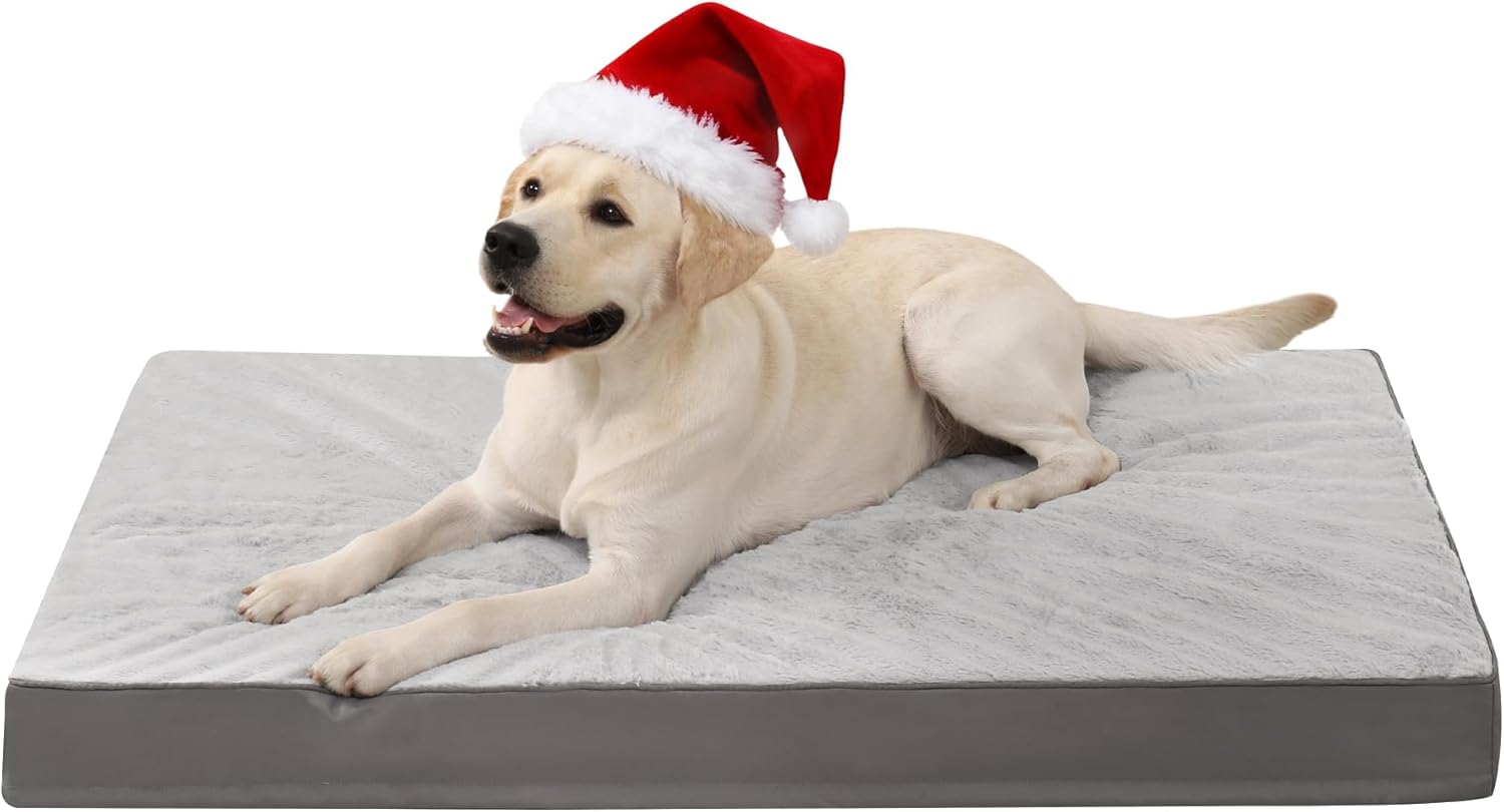 Ортопедично легло за кучета KSIIA за големи кучета, перащо се 105 x 70 см, кучешки легла с подвижен капак, двустранно обръщаемо, сиво