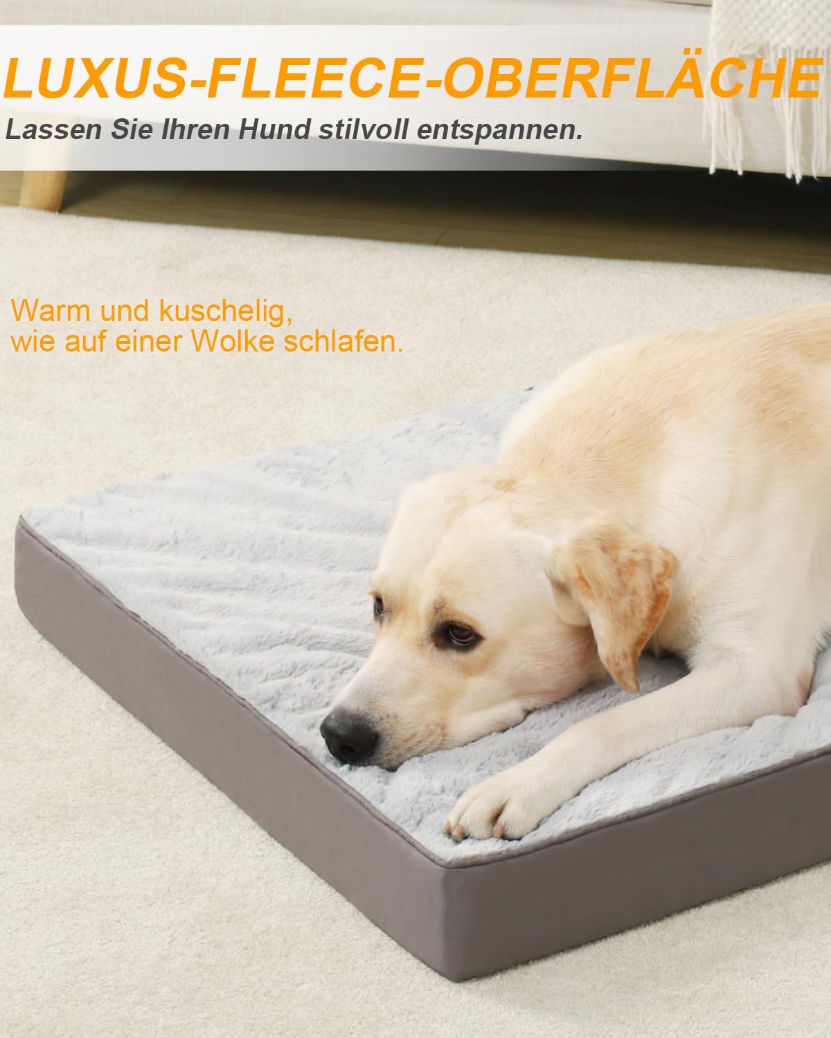 • ПОДДРЪЖКА ОТ ЯЙЧНА ПЯНА Ортопедичното легло за кучета е изработено от висококачествена пяна тип „яйчена черупка“, която нежно поддържа тялото на вашия домашен любимец. Уникалният вълнообразен дизайн разпределя теглото равномерно върху точките на натиск, като минимизира точките на натиск върху костите и ставите, облекчава стреса върху ставите и подобрява качеството на съня.