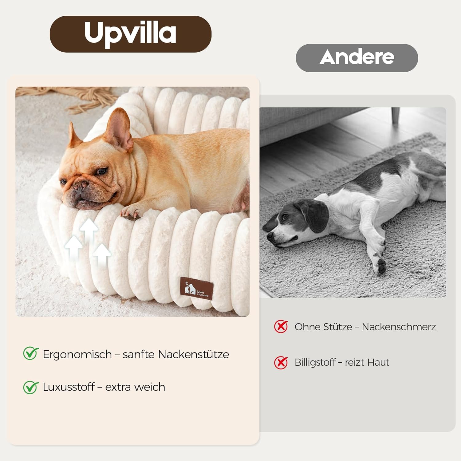 • ЛУКСОЗЕН МЕК МАТЕРИАЛ Мекият калъф на одеялото за кучешко легло е като пухкава истинска заешка кожа - запазва топлината и пухкавостта си. Кучетата обичат този пухкав комфорт - всяка почивка се превръща в удоволствие.