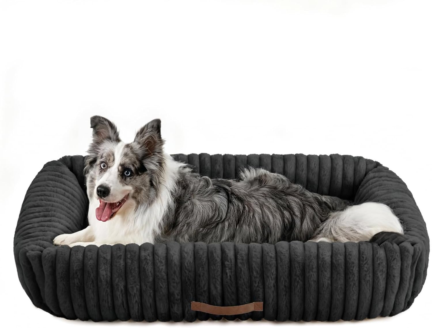 Ортопедично легло за кучета от кадифе XL с висока възглавница, перащо се легло за кучета с неплъзгаща се долна страна, черно, 109 x 76 x 20 см