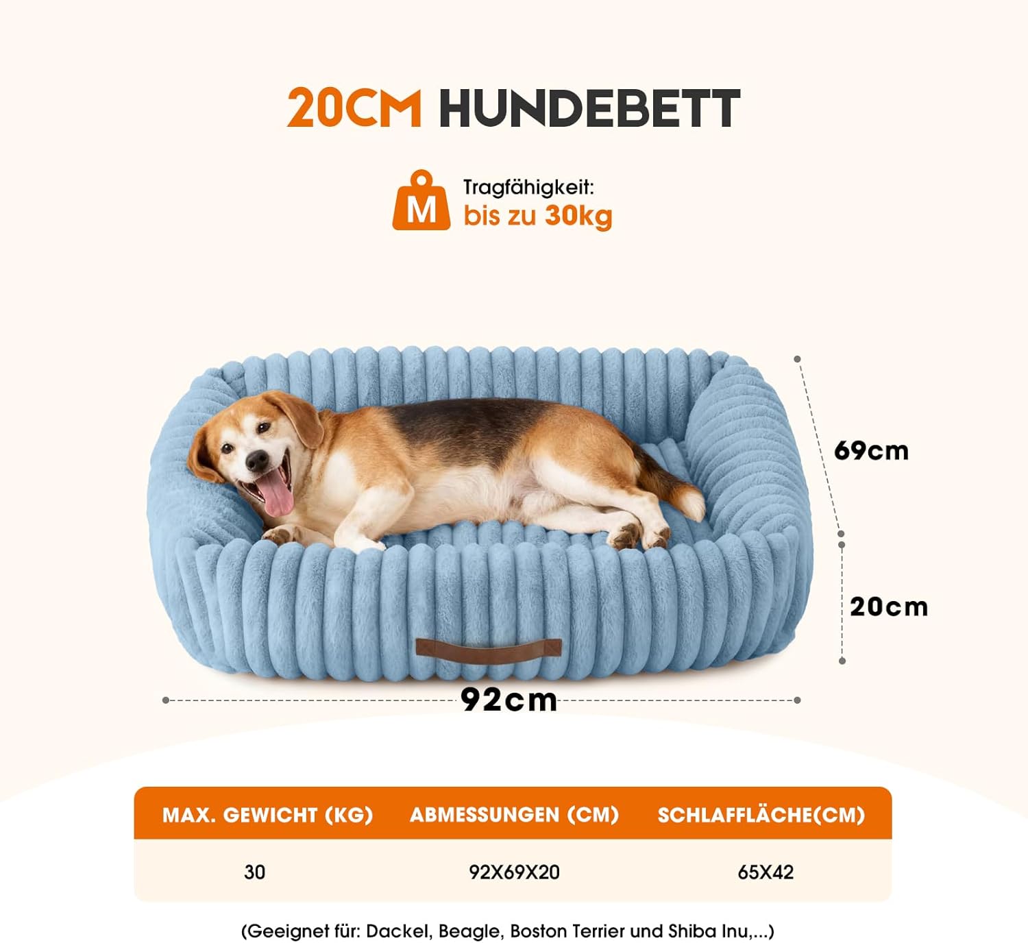 • Размери и инструкции за употреба: размерите на леглото за кучета са 109 × 76 × 20 см (площадка за спане: 82 × 49 см). Моля, измерете предварително размера на вашето куче и потупайте пълнежа равномерно, така че кошът за кучета да се разгъне напълно и да осигури максимален комфорт.