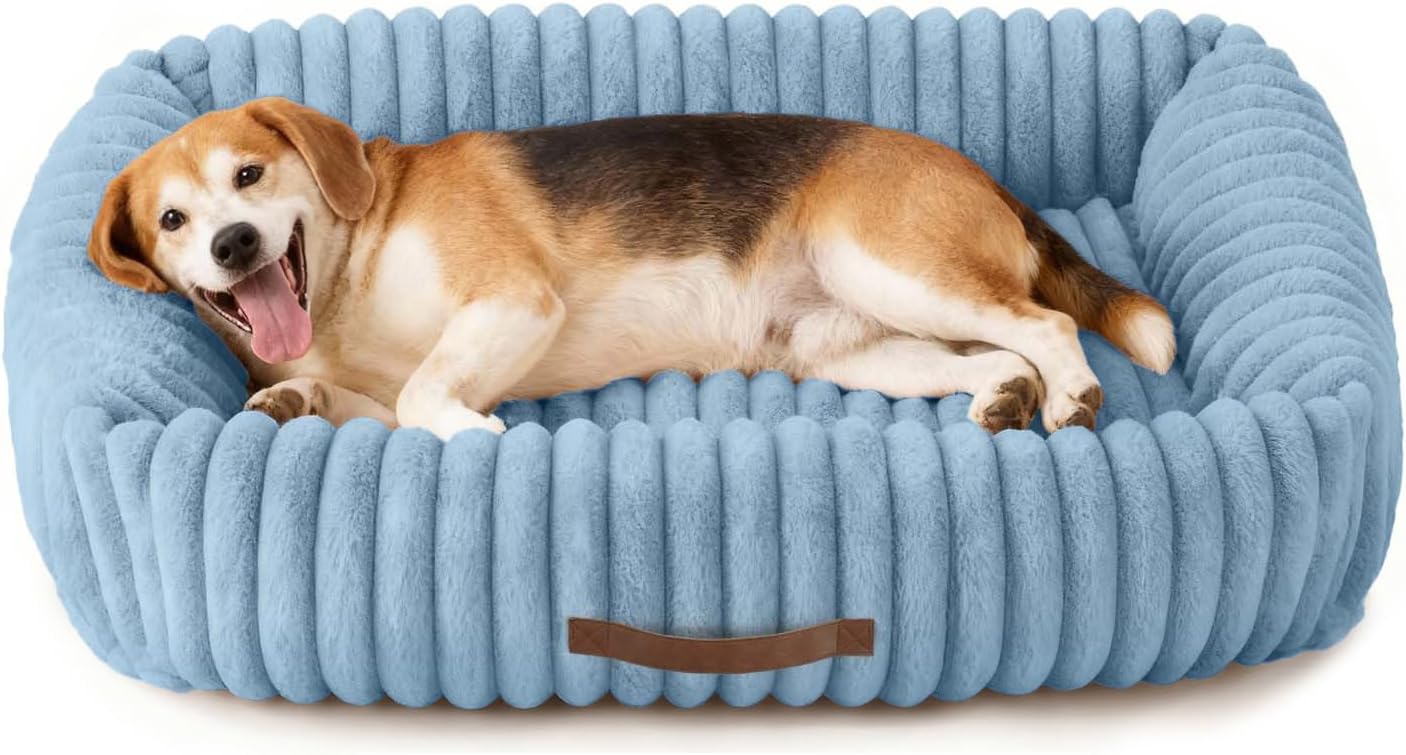Ортопедично легло за кучета от кадифе за големи кучета с висока възглавница, което може да се пере, легла за кучета с неплъзгаща се долна страна, (синьо, 91,5 x 69 x 20 см)