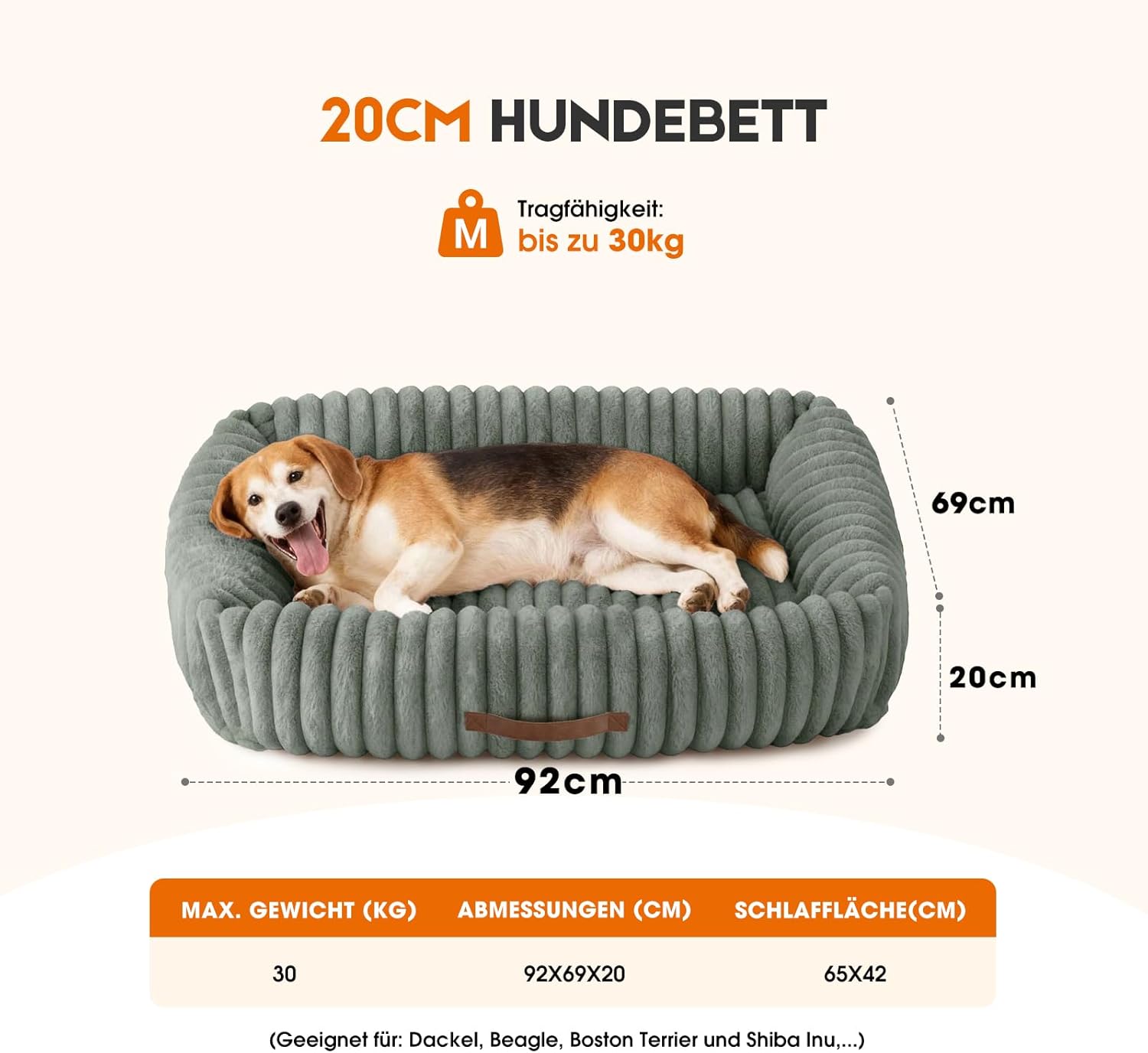 • Размери и инструкции за употреба: размерите на леглото за кучета са 109 × 76 × 20 см (площадка за спане: 82 × 49 см). Моля, измерете предварително размера на вашето куче и потупайте пълнежа равномерно, така че кошът за кучета да се разгъне напълно и да осигури максимален комфорт.