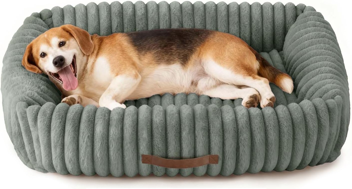 Ортопедично легло за кучета от кадифе за големи кучета с висока възглавница, което може да се пере, легла за кучета с неплъзгаща се долна страна, (тъмносиво, 91,5 x 69 x 20 см)