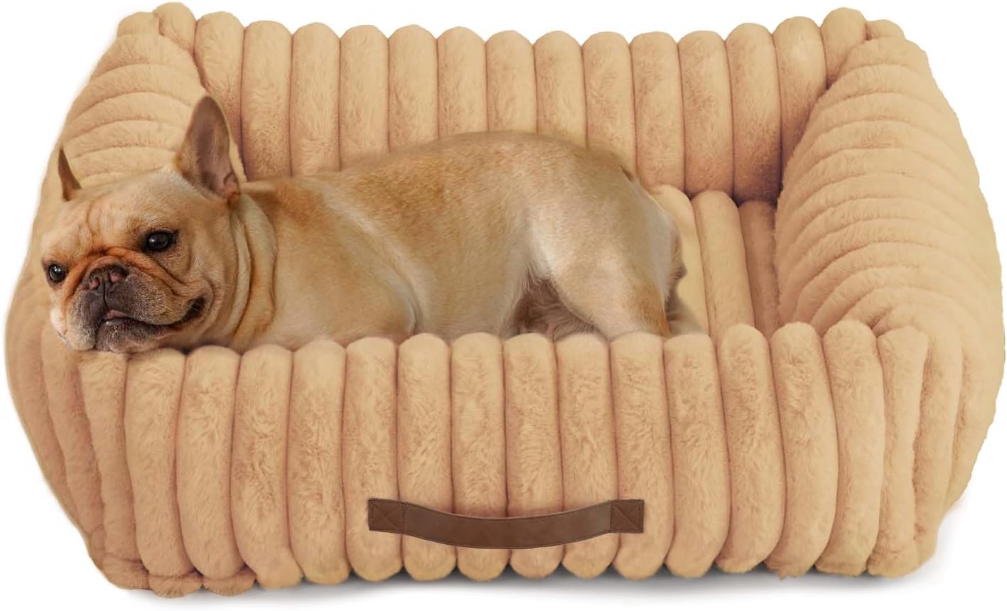 Ортопедично легло за кучета от кадифе, за средни кучета, може да се пере, с противоплъзгаща долна страна, (топъл пясък, 63,5 x 53 x 18 см)