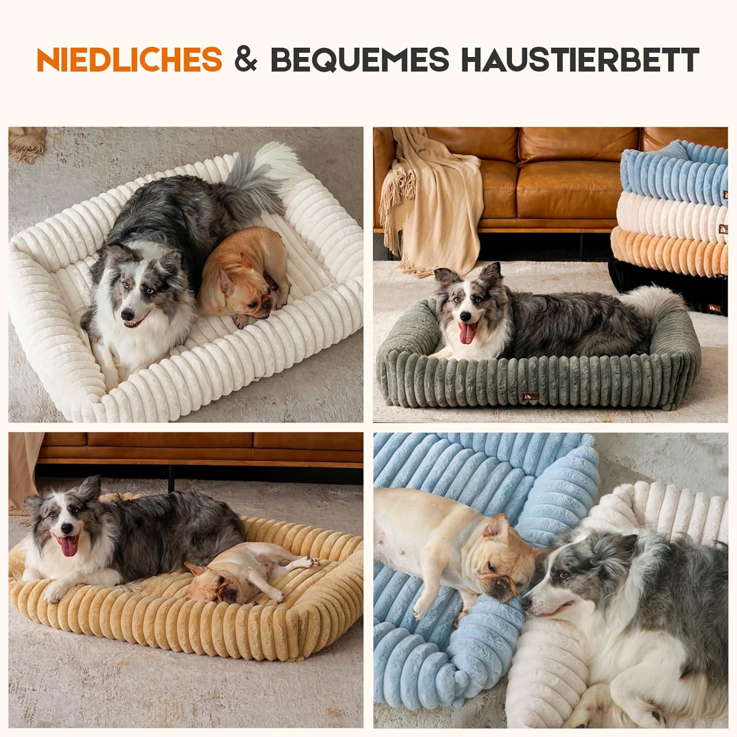 • Размери и инструкции за употреба: размерите на леглото за кучета са 109 × 76 × 20 см (площадка за спане: 82 × 49 см). Моля, измерете предварително размера на вашето куче и потупайте пълнежа равномерно, така че кошът за кучета да се разгъне напълно и да осигури максимален комфорт.