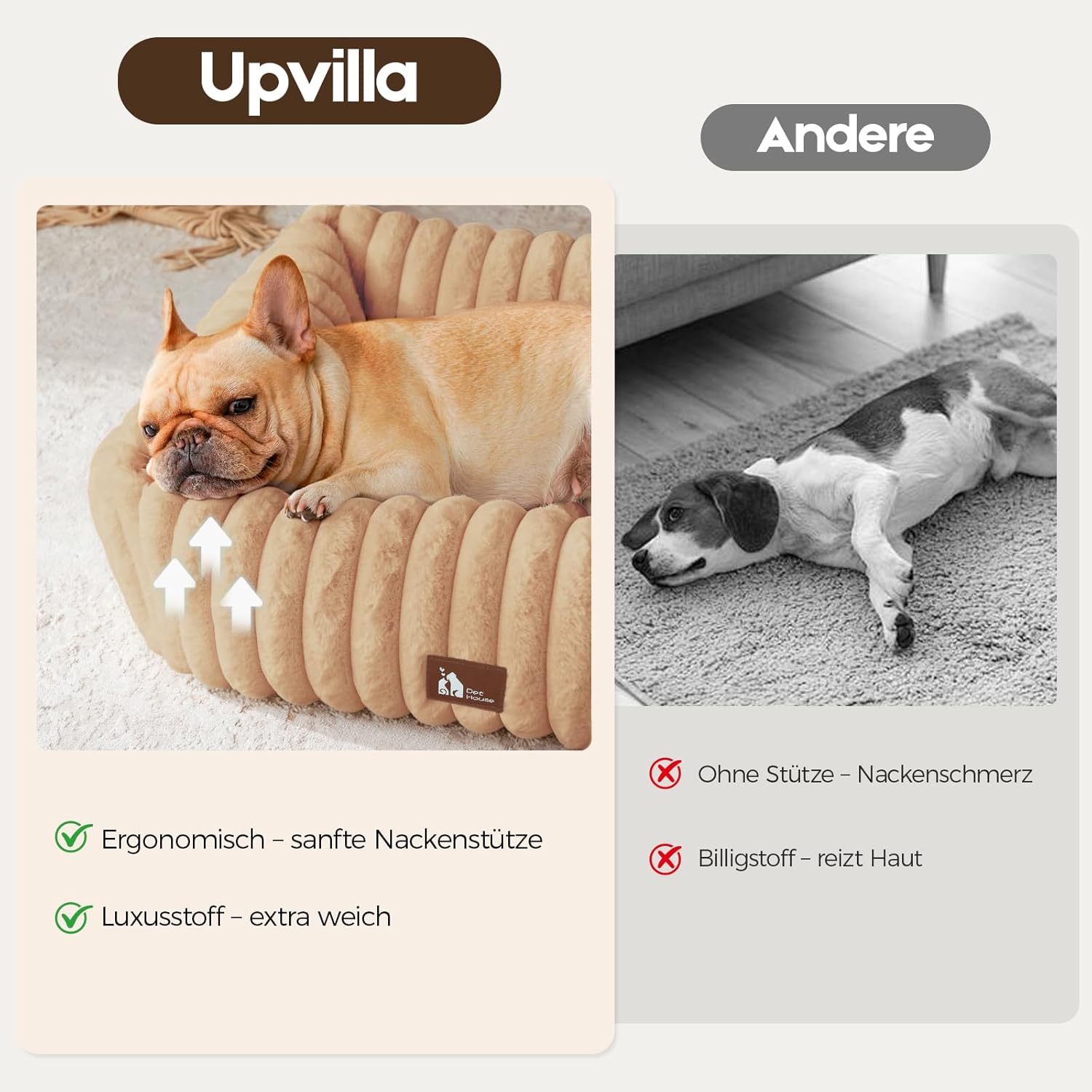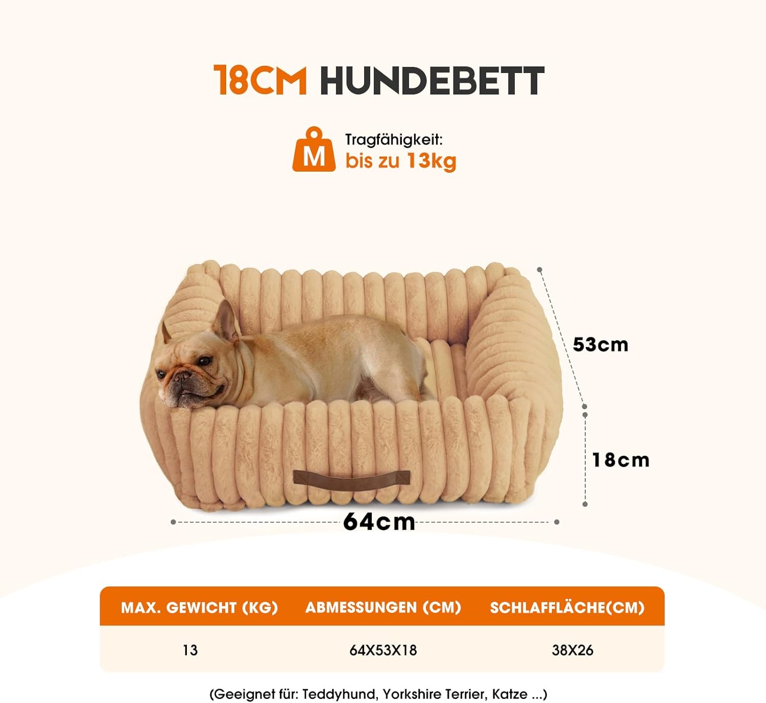 • ЧЕТИРИСТРАННА ВЪЗГЛАВНИЦА И СТАБИЛНОСТ Четирите странични възглавници и седалката на това кучешко легло са пълни с висококачествени парчета мемори пяна. Общото тегло е увеличено до 4,4 кг за перфектна стабилност. Поддържа главата и тялото, облекчава ставите, осигурява 360° сигурност, сякаш е в ръцете на майка.