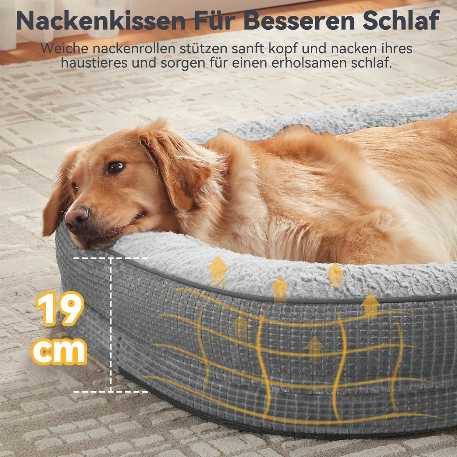 • 360° подплата: Това ортопедично легло за кучета с пълната си 360° подплата осигурява безопасно, затворено пространство - идеално за кучета, които обичат да се свиват или да се облягат на тях. Подплатените подложки поддържат главата и врата от всички страни, осигурявайки по-добър сън и комфорт на цялото тяло във всяка позиция.