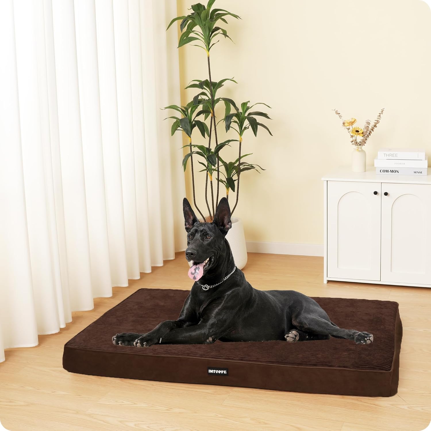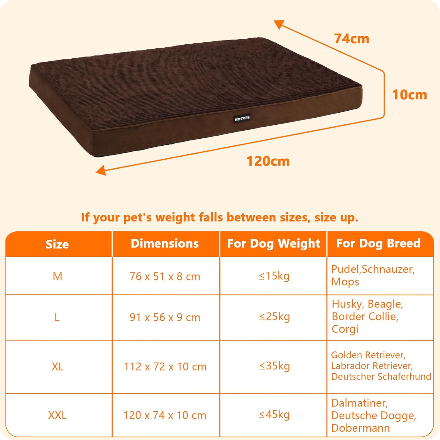 Ортопедично легло за кучета, възглавница за големи кучета с дебелина 10 см, сваляща се и переща се подложка за кучета, неплъзгаща се долна страна, водоустойчива подплата, 120 см, кафяво