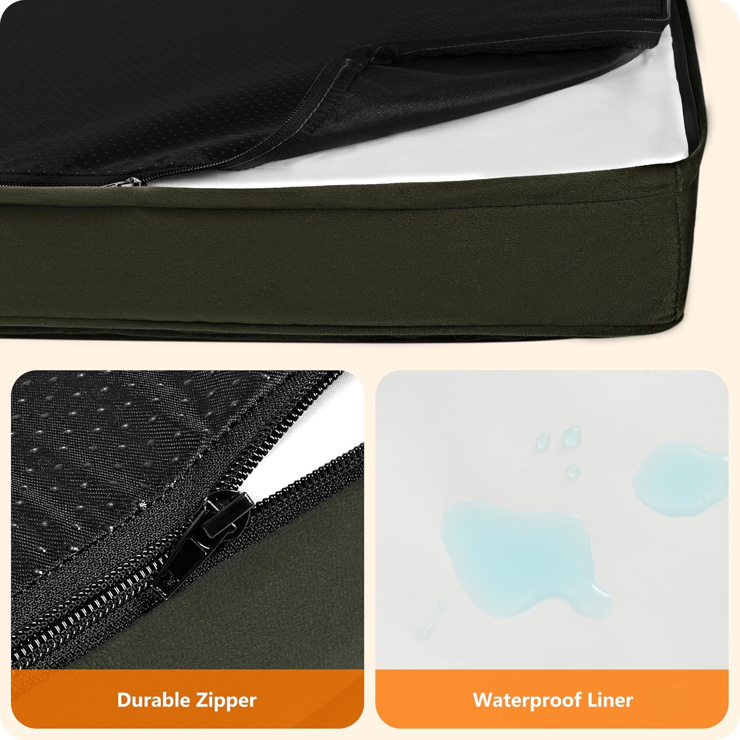 Ортопедично легло за кучета, възглавница за големи кучета с дебелина 10 см, сваляща се и переща се подложка за кучета, неплъзгаща се долна страна, водоустойчива подплата, 120 см, маслинено зелено