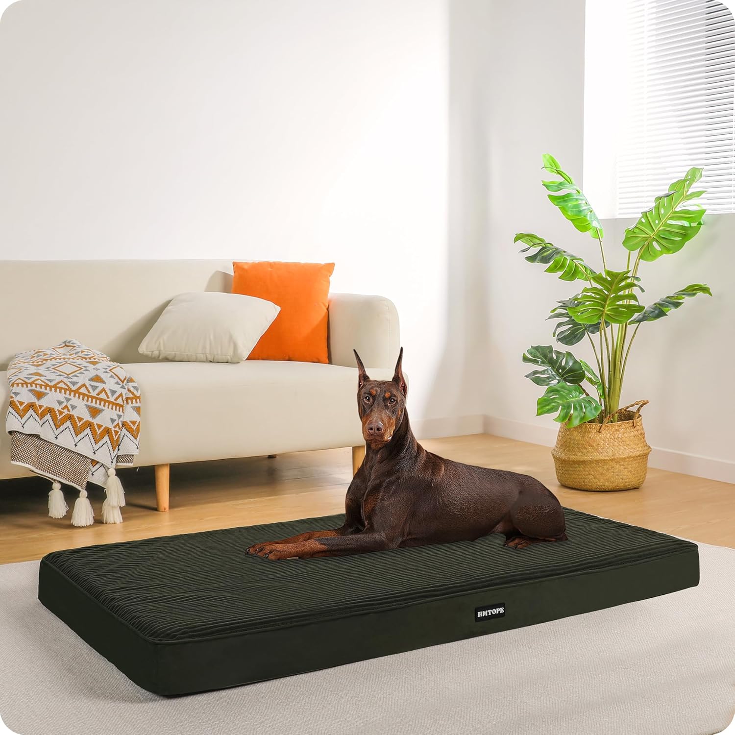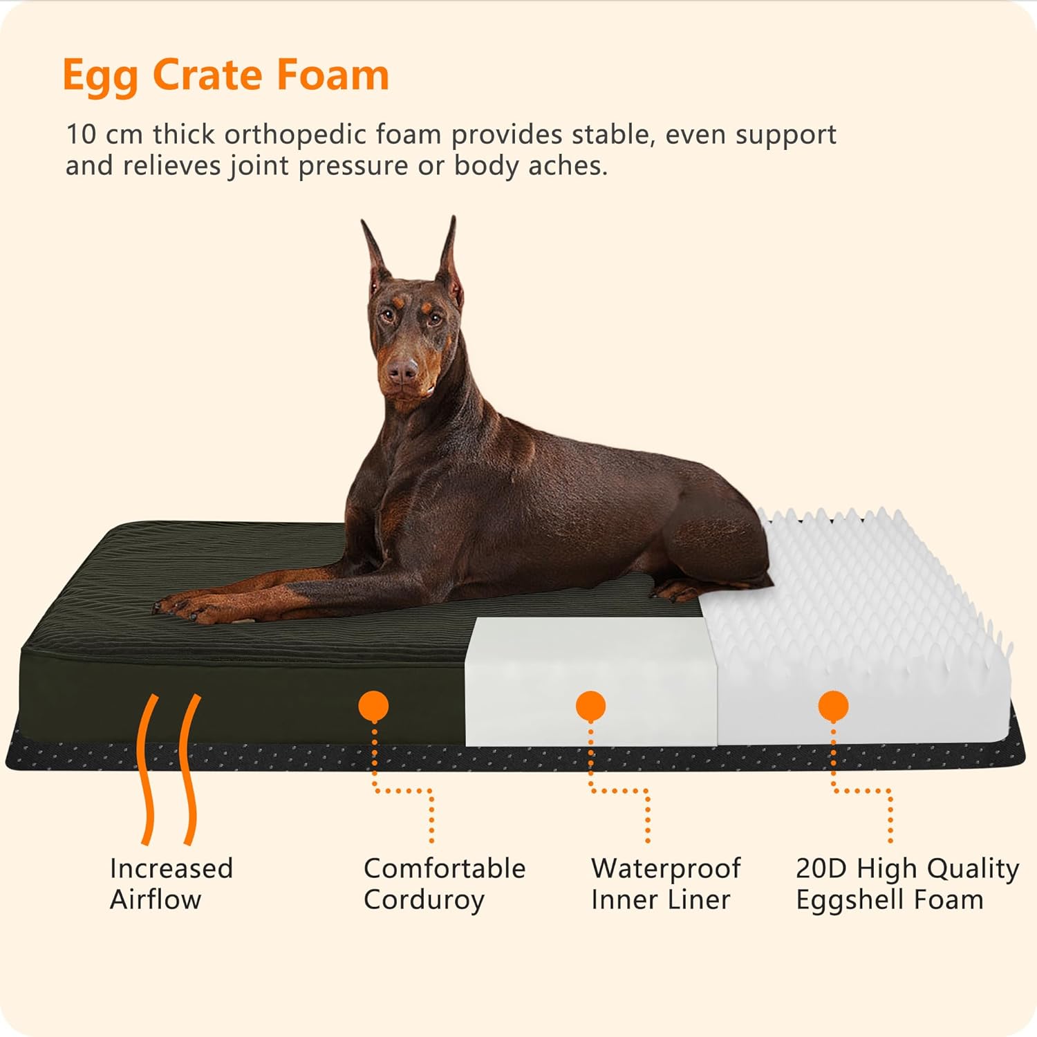 • 【Стремете се към комфорт】Нашето ортопедично легло за кучета е пълно с пяна от картонена кутия за яйца, която осигурява повече мекота и опора в сравнение с конвенционалните гъбени легла. Възглавницата с дебелина 10 см осигурява равномерно разпределение на теглото и осигурява комфорт за ставите на вашето куче, висококачествен сън.