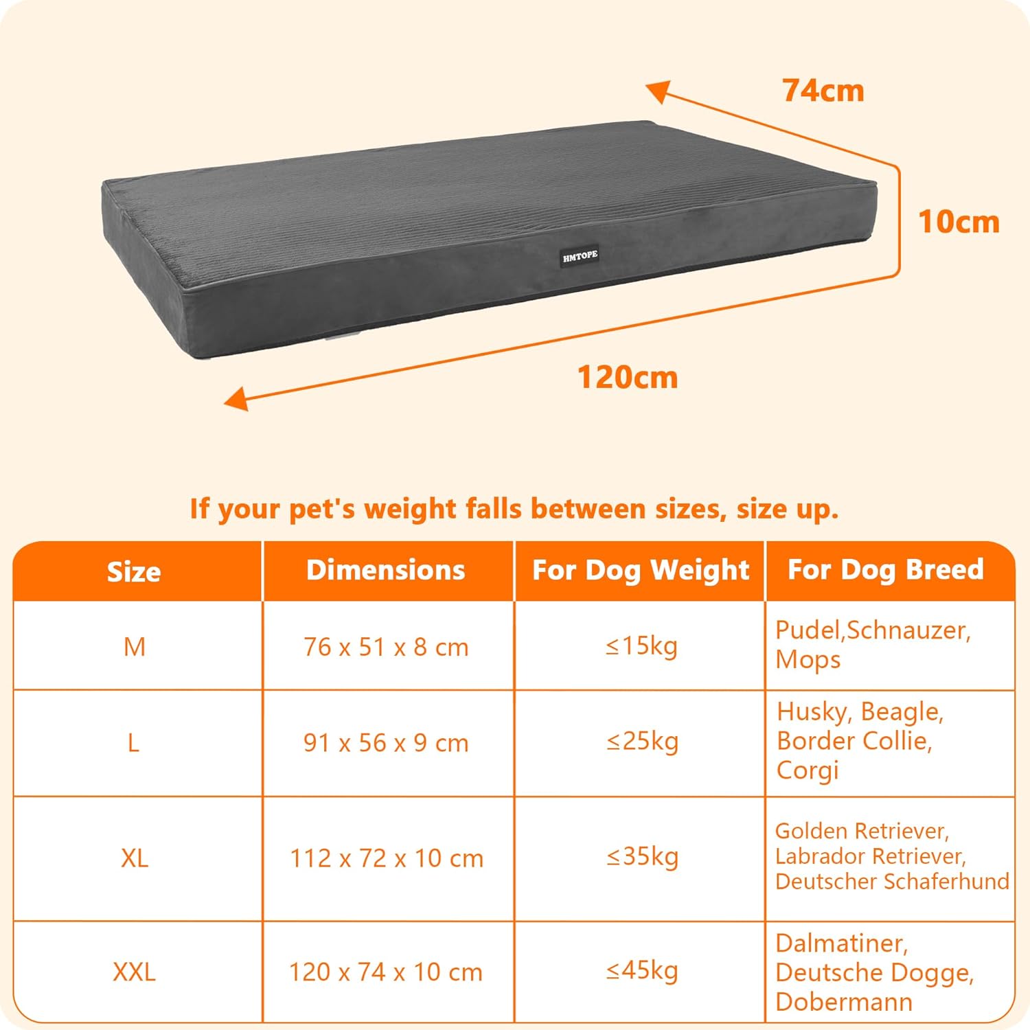 Ортопедично легло за кучета, възглавница за големи кучета с дебелина 10 см, сваляща се и переща се подложка за кучета, неплъзгаща се долна страна, водоустойчива подплата, 120 см, тъмносиво
