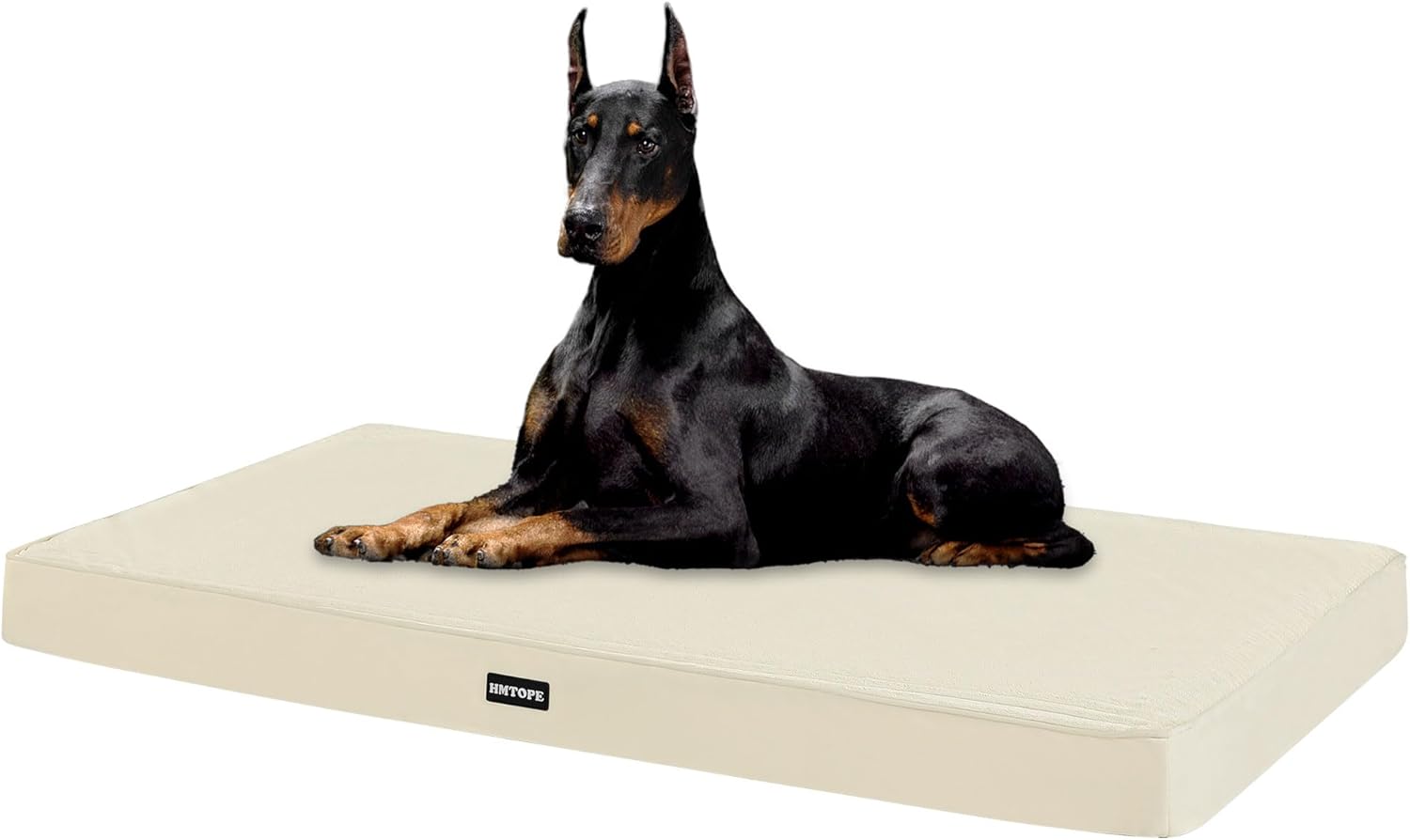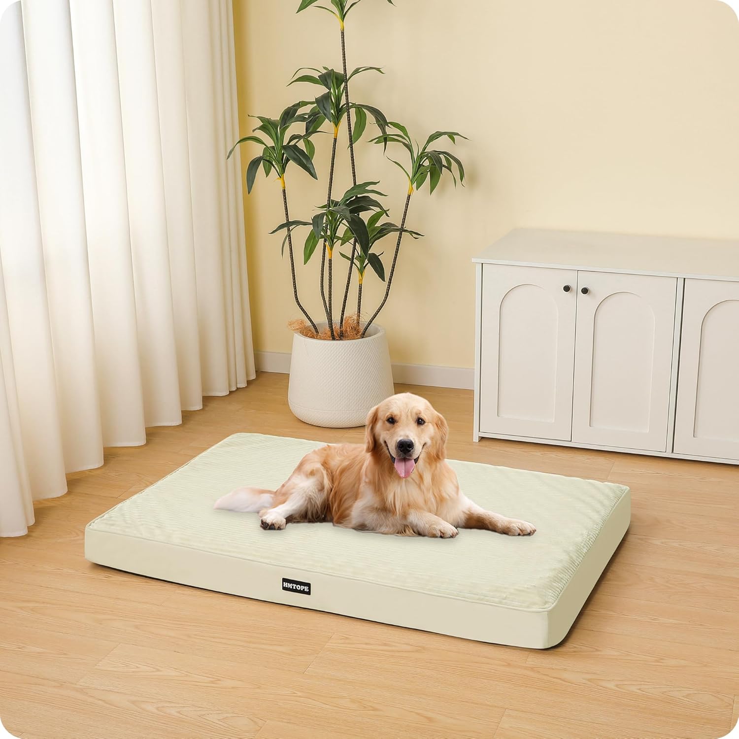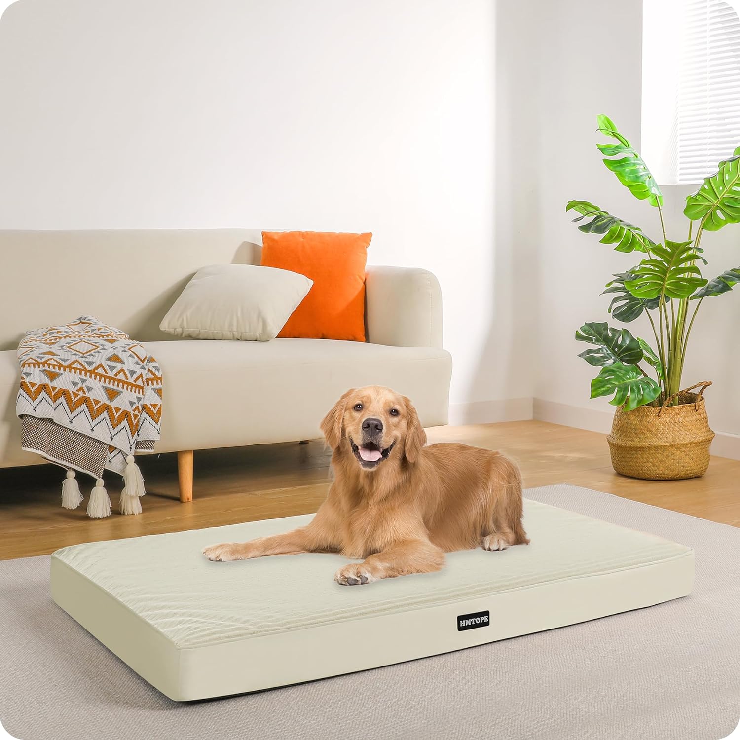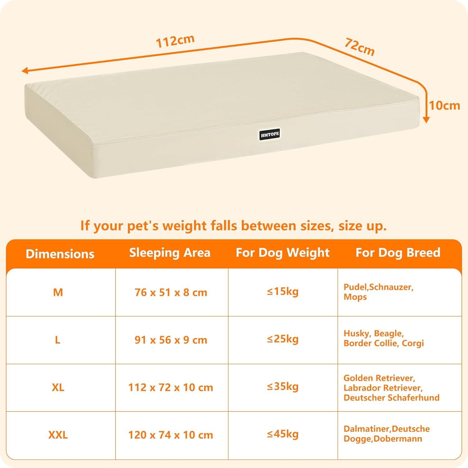 Ортопедично легло за кучета, възглавница за кучета с дебелина 10 см за средни кучета, големи кучета, подвижна и переща се подложка за кучета, неплъзгаща се долна страна, водоустойчива подплата, 112 см, бежово