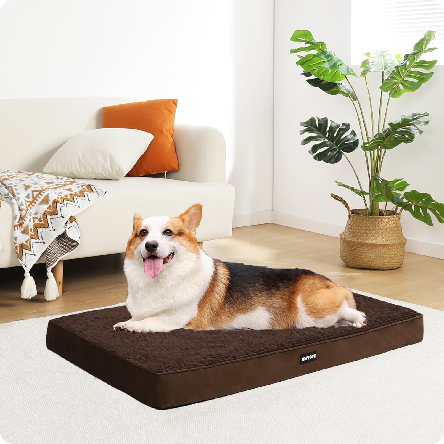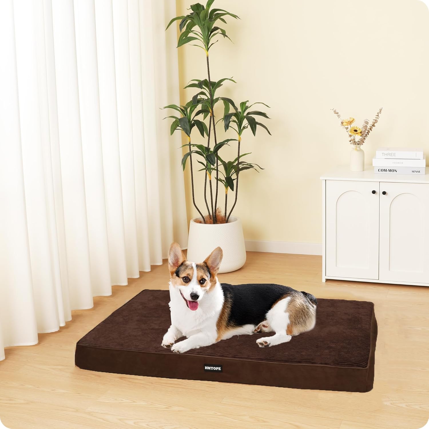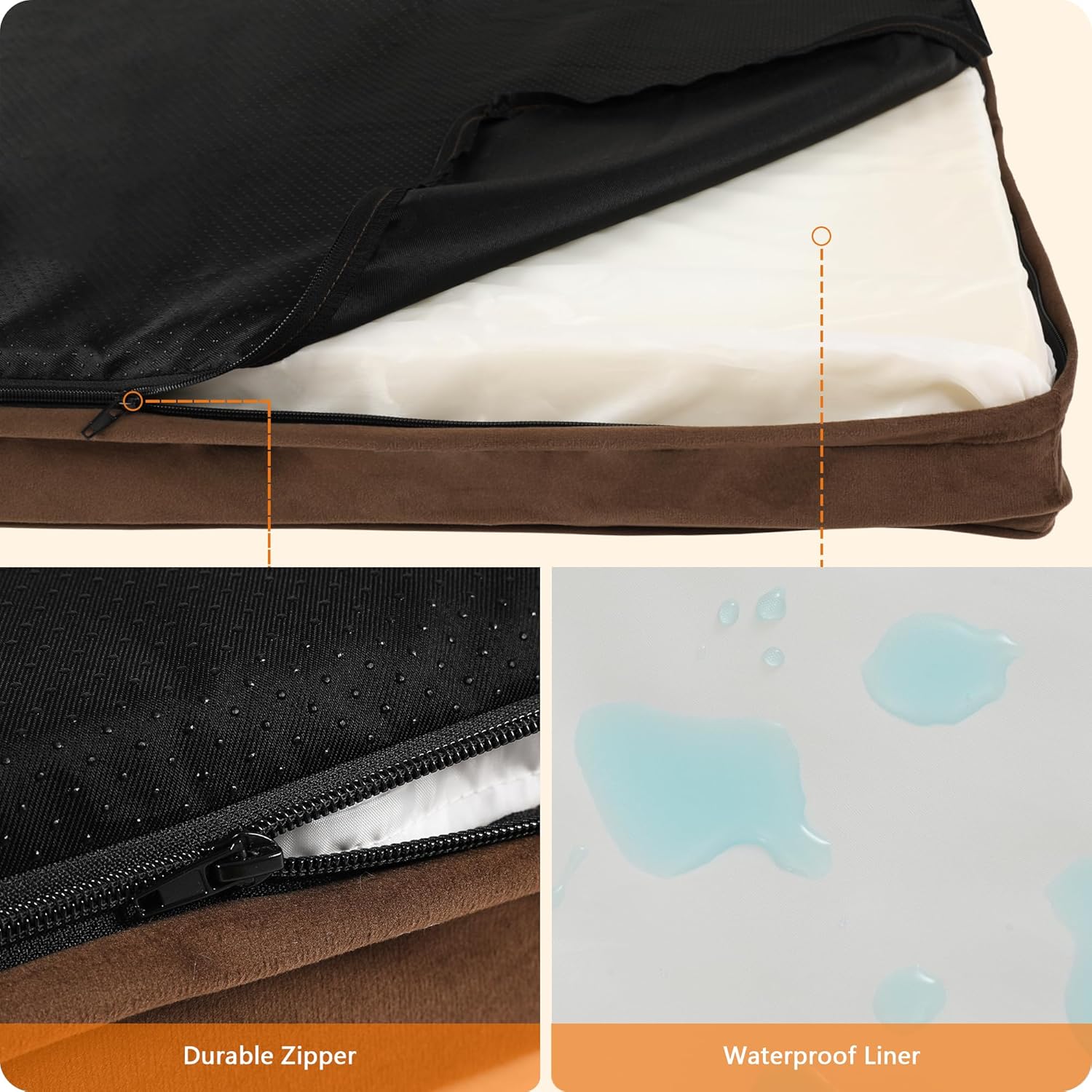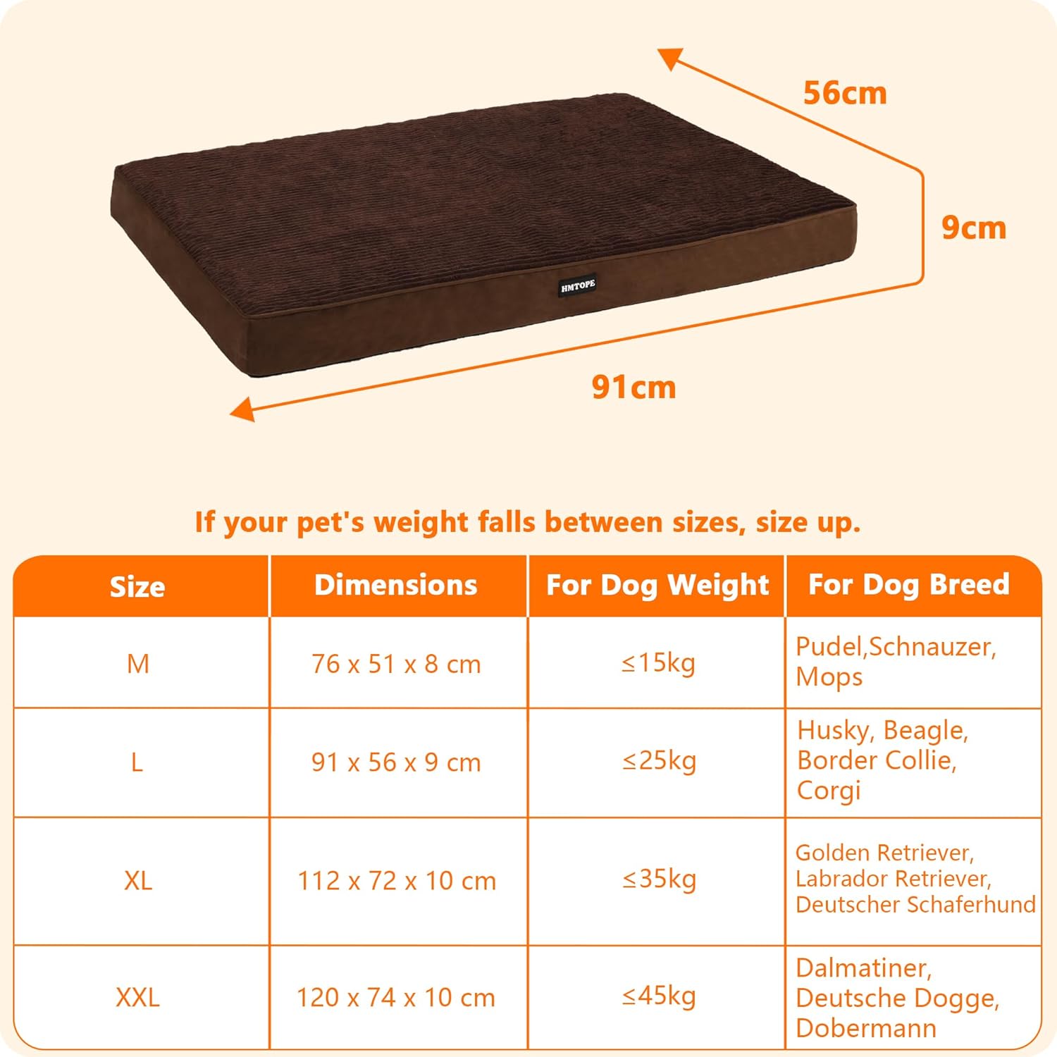 Ортопедично легло за кучета, възглавница за кучета с дебелина 9 см за средни кучета, подвижна и переща се подложка за кучета, неплъзгаща се долна страна, водоустойчива подплата, 91 см, кафяво