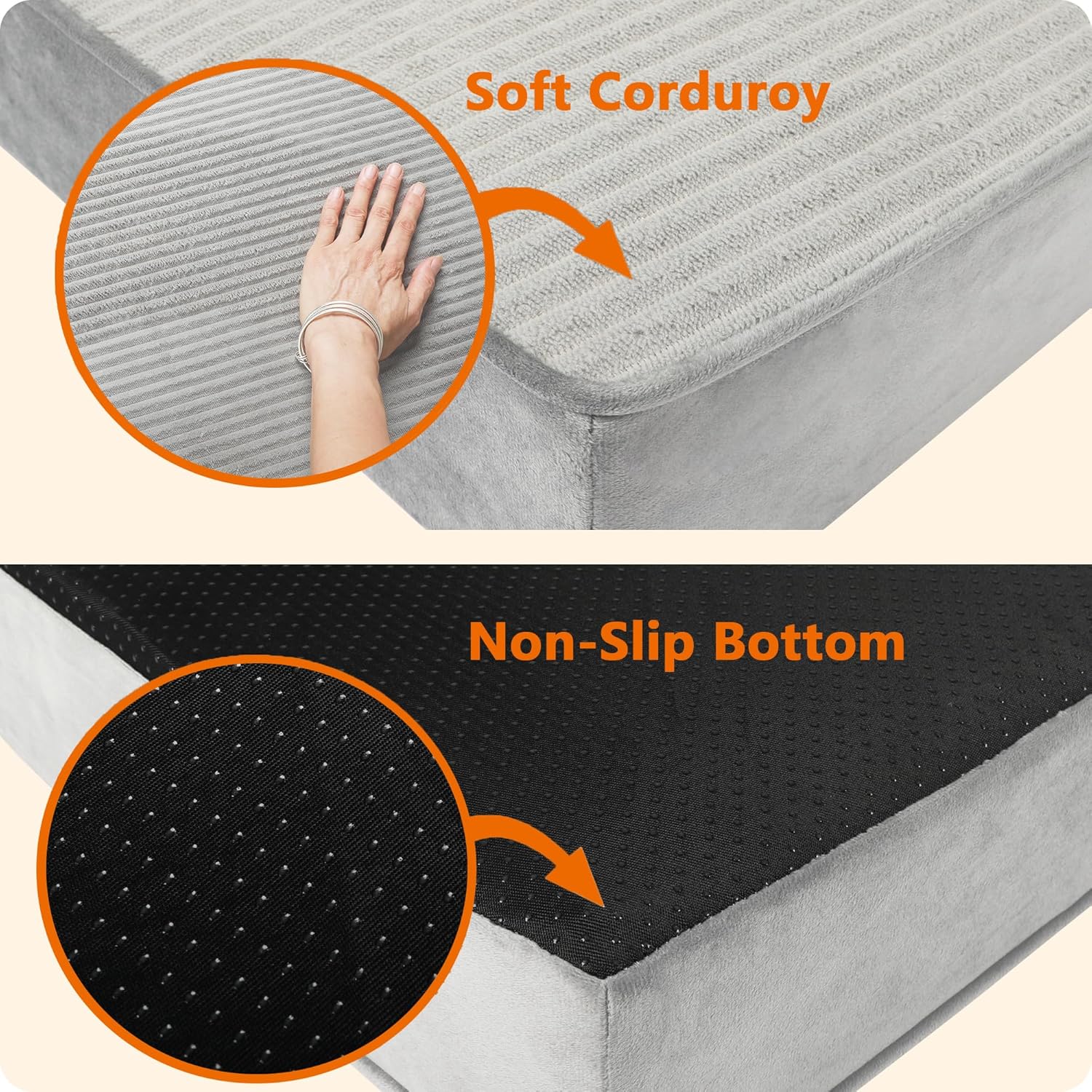• Висококачествен материал: нашите подложки за кучета са изработени от кадифе по краищата и корд 200 г/м² по повърхността, който е мек и удобен, адаптира се към предпочитанията на кучето и осигурява безопасно и комфортно място за почивка. Пластмасовата основа на точки има противоплъзгаща функция, така че подложката за кучета не се плъзга наляво и надясно, което я прави по-безопасна и подходяща за различни поводи.