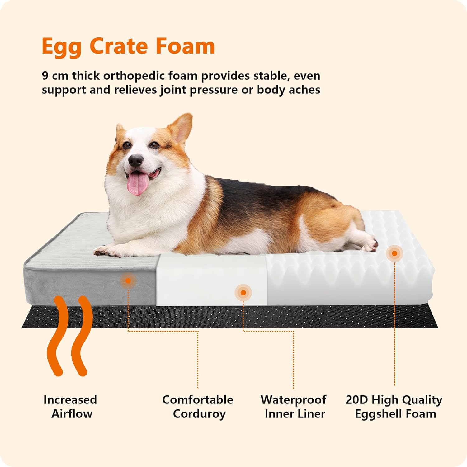 • 【Стремете се към комфорт】Нашето ортопедично легло за кучета е пълно с пяна от картонена кутия за яйца, която осигурява повече мекота и опора в сравнение с конвенционалните гъбени легла. Възглавницата с дебелина 10 см осигурява равномерно разпределение на теглото и осигурява комфорт за ставите на вашето куче, висококачествен сън.