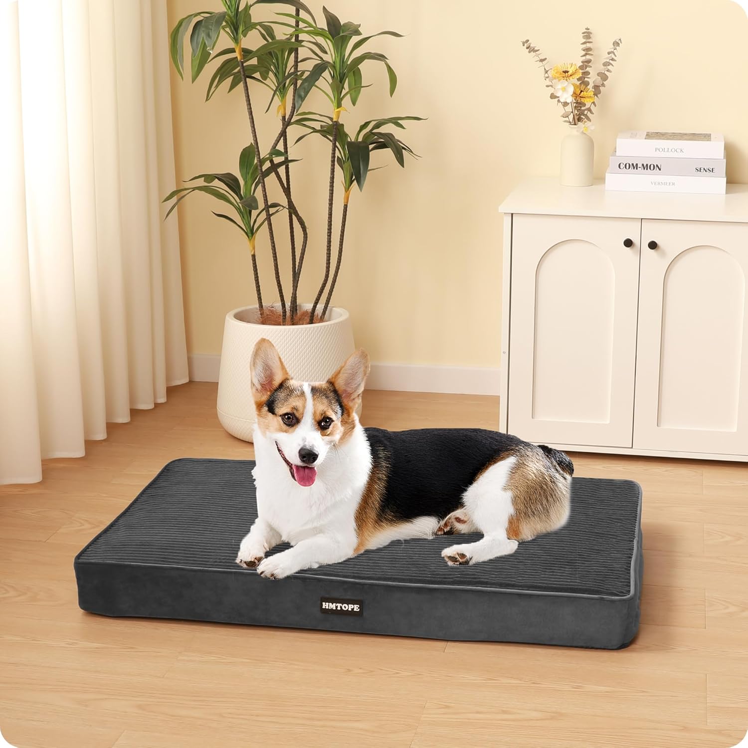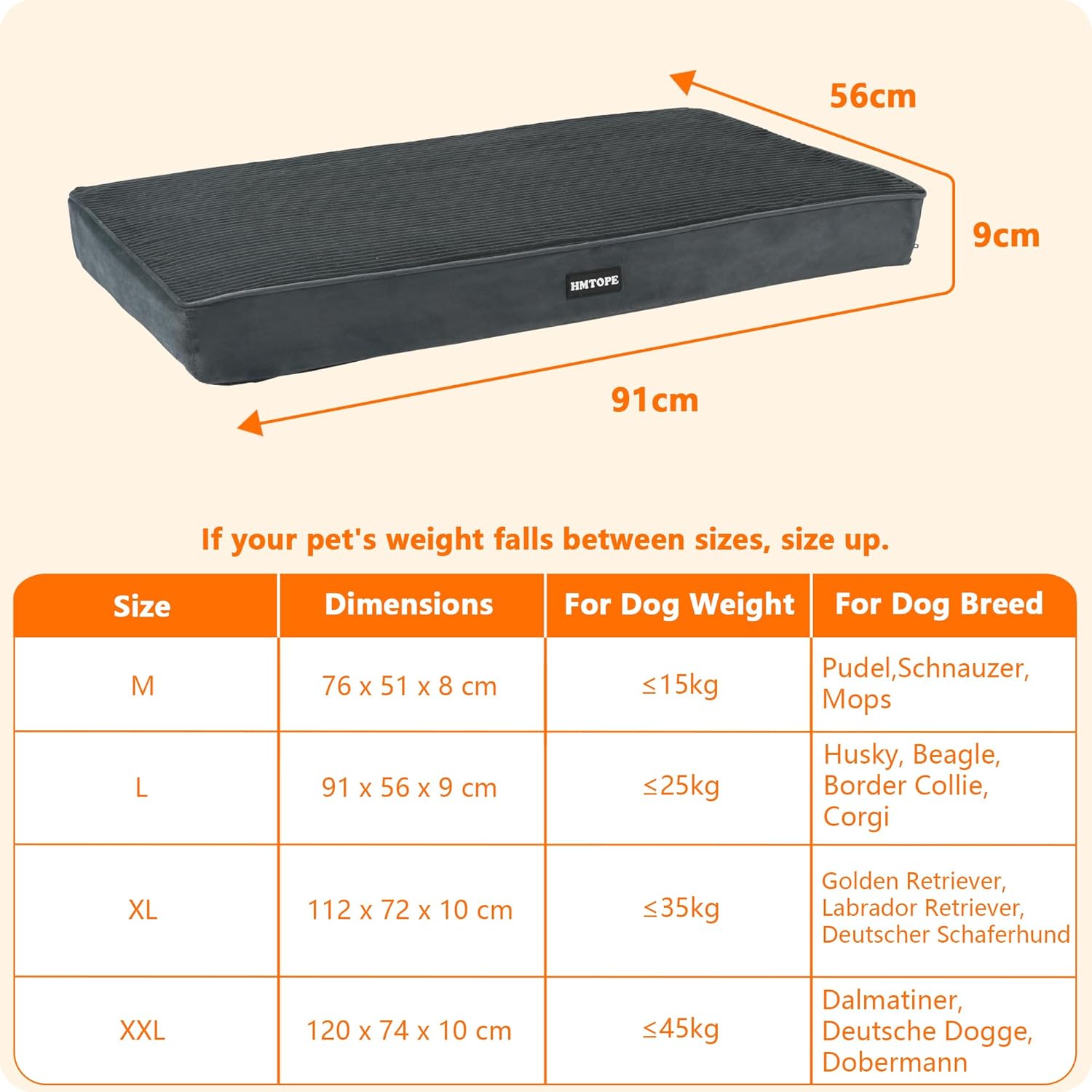 Ортопедично легло за кучета, възглавница за кучета с дебелина 9 см за средни кучета, подвижна и переща се подложка за кучета, неплъзгаща се долна страна, водоустойчива подплата, 91 см, тъмносиво