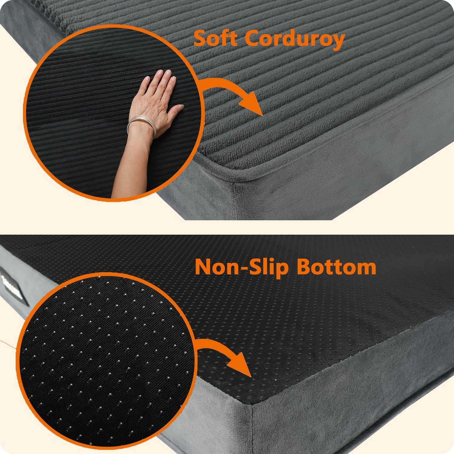 • 【Стремете се към комфорт】Нашето ортопедично легло за кучета е пълно с пяна от картонена кутия за яйца, която осигурява повече мекота и опора в сравнение с конвенционалните гъбени легла. Възглавницата с дебелина 10 см осигурява равномерно разпределение на теглото и осигурява комфорт за ставите на вашето куче, висококачествен сън.