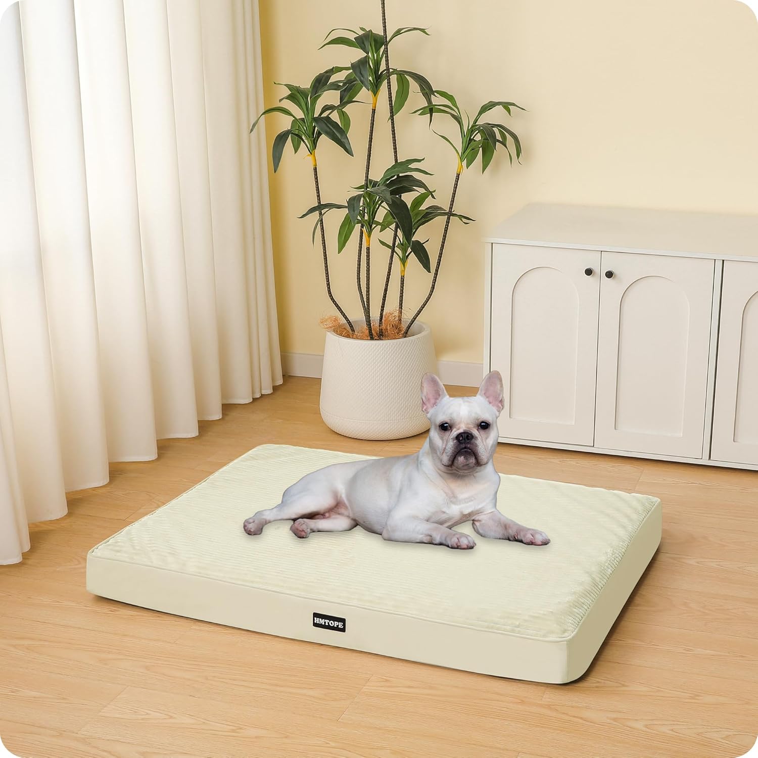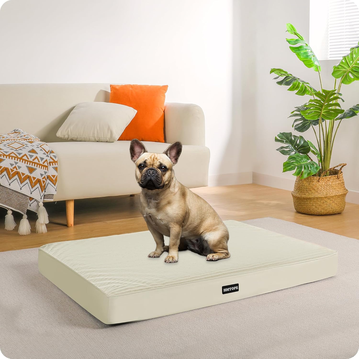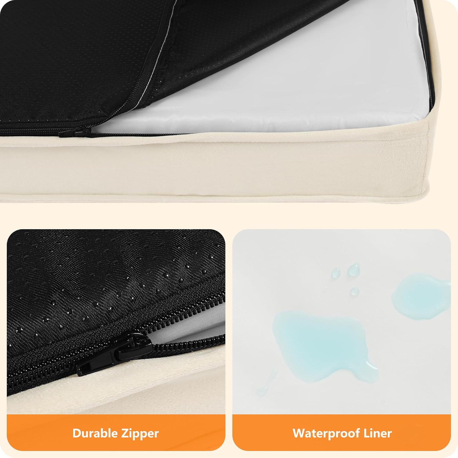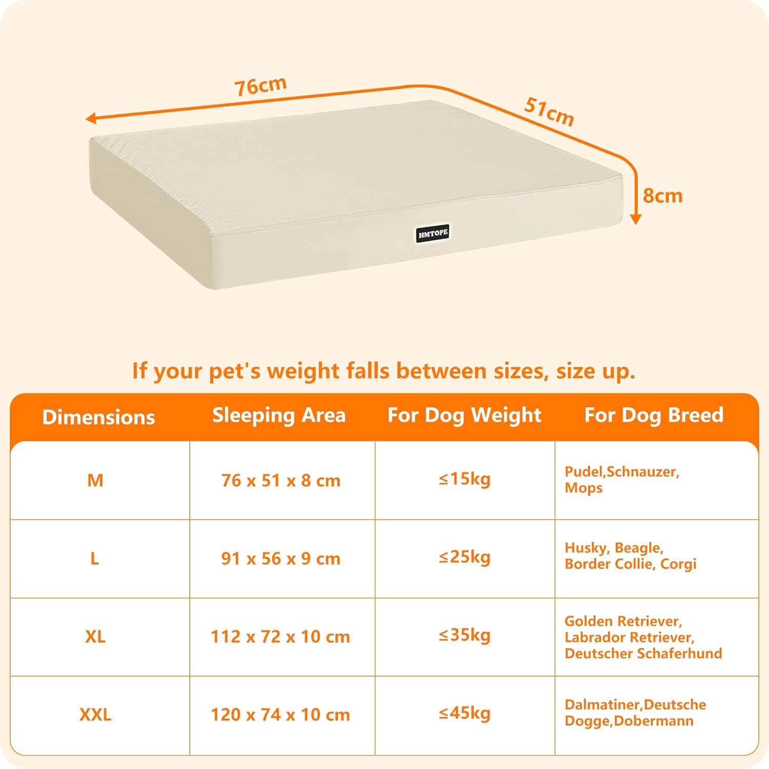 Ортопедично легло за кучета, възглавница за малки кучета с дебелина 8 см, сваляща се и переща се подложка за кучета, неплъзгаща се долна страна, водоустойчива подплата, 76 см, бежово
