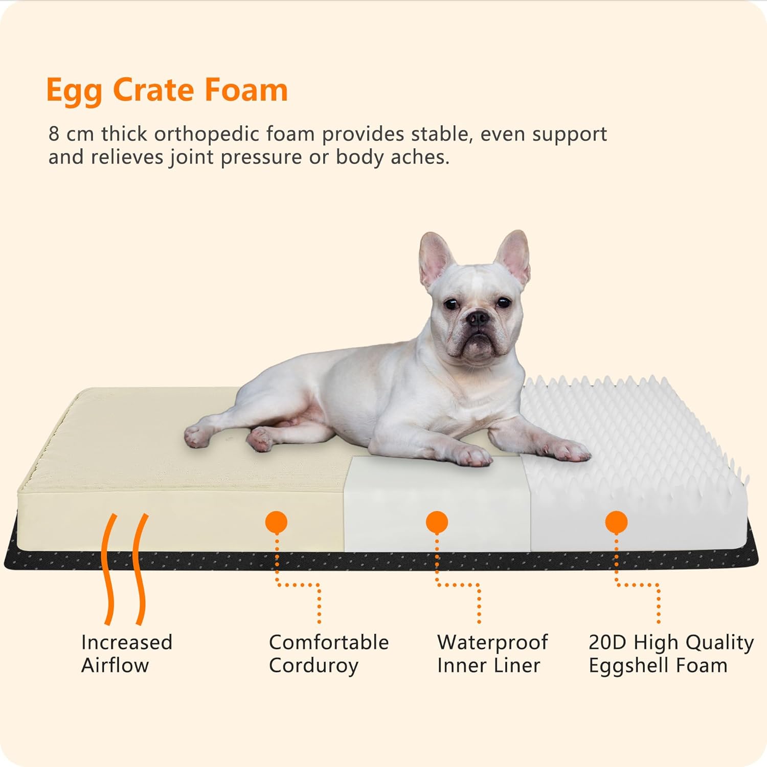 • 【Стремете се към комфорт】Нашето ортопедично легло за кучета е пълно с пяна от картонена кутия за яйца, която осигурява повече мекота и опора в сравнение с конвенционалните гъбени легла. Възглавницата с дебелина 10 см осигурява равномерно разпределение на теглото и осигурява комфорт за ставите на вашето куче, висококачествен сън.