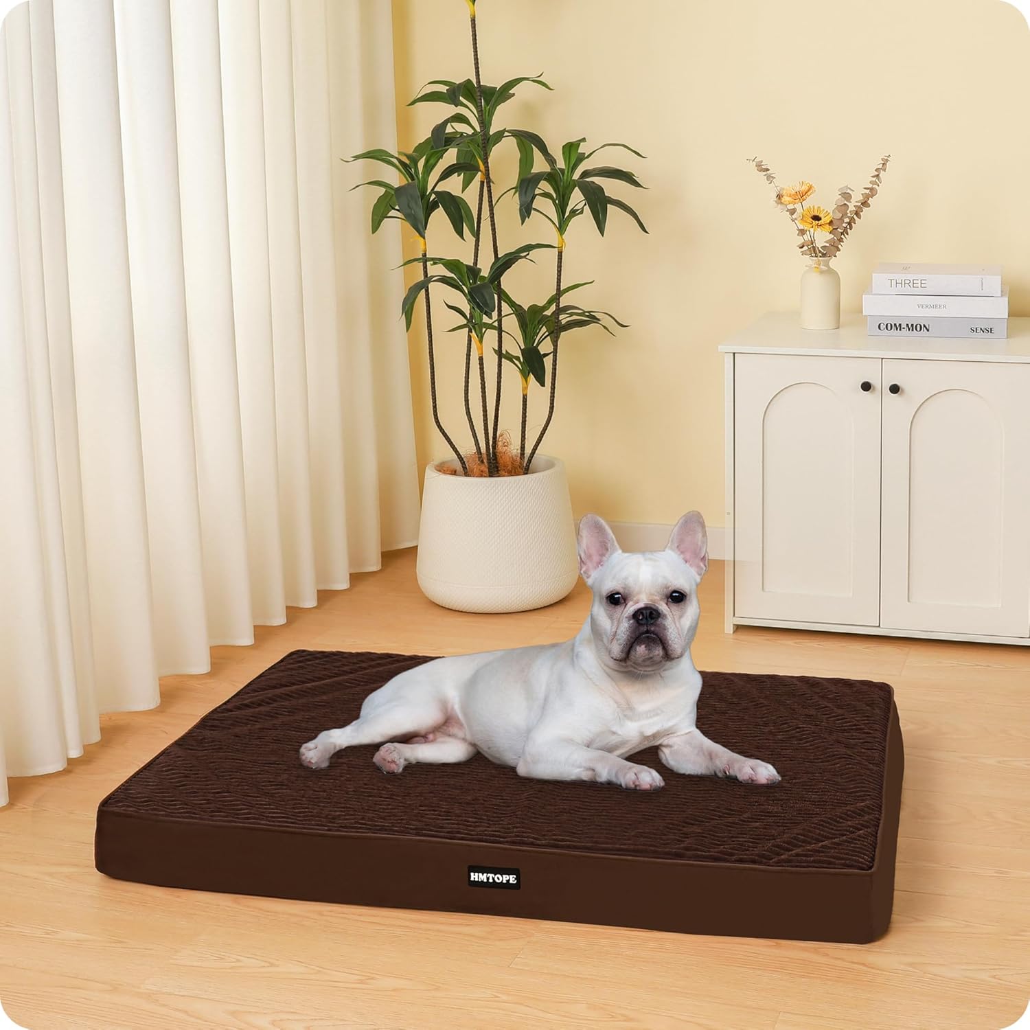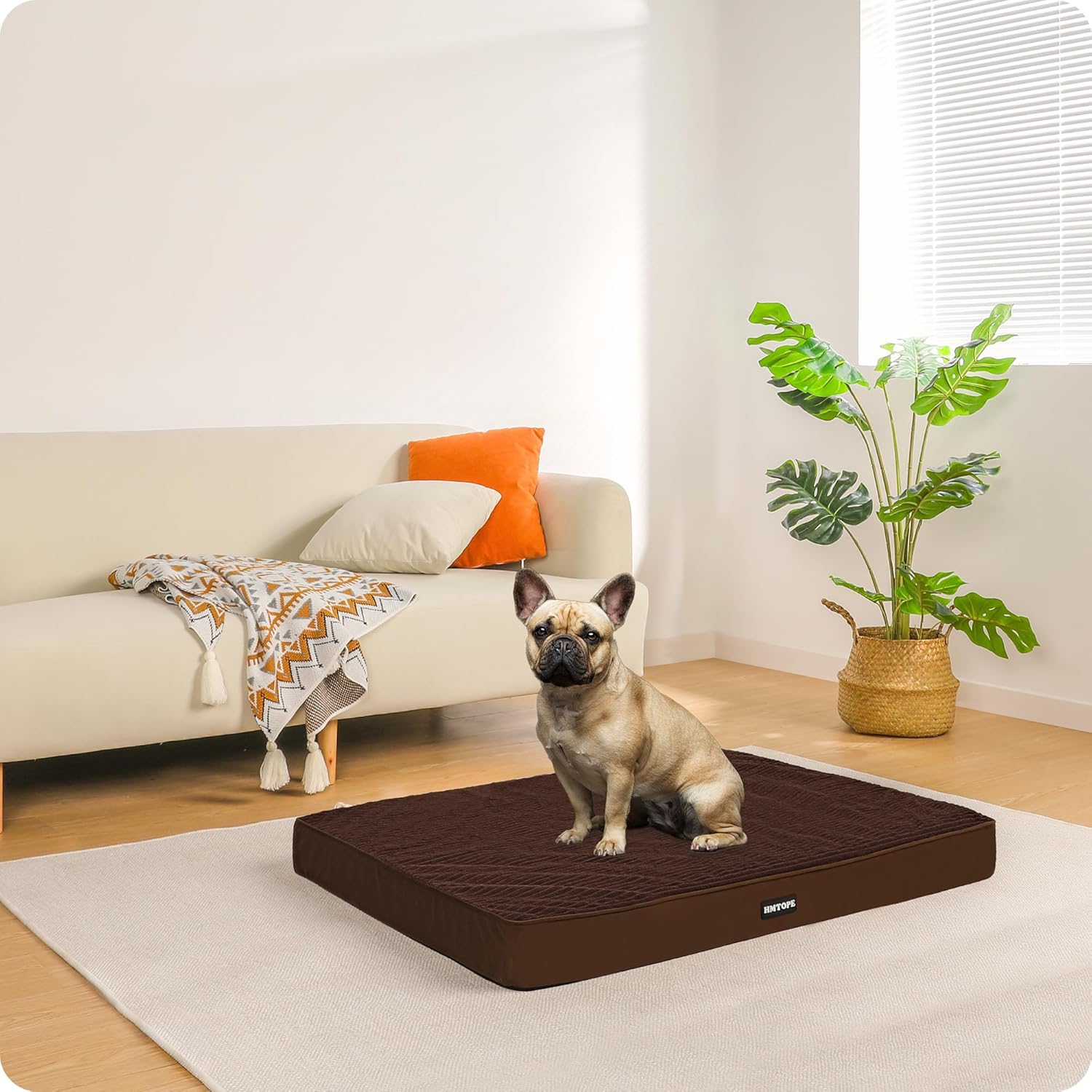 Ортопедично легло за кучета, възглавница за малки кучета с дебелина 8 см, сваляща се и переща се подложка за кучета, неплъзгаща се долна страна, водоустойчива подплата, 76 см, кафяво