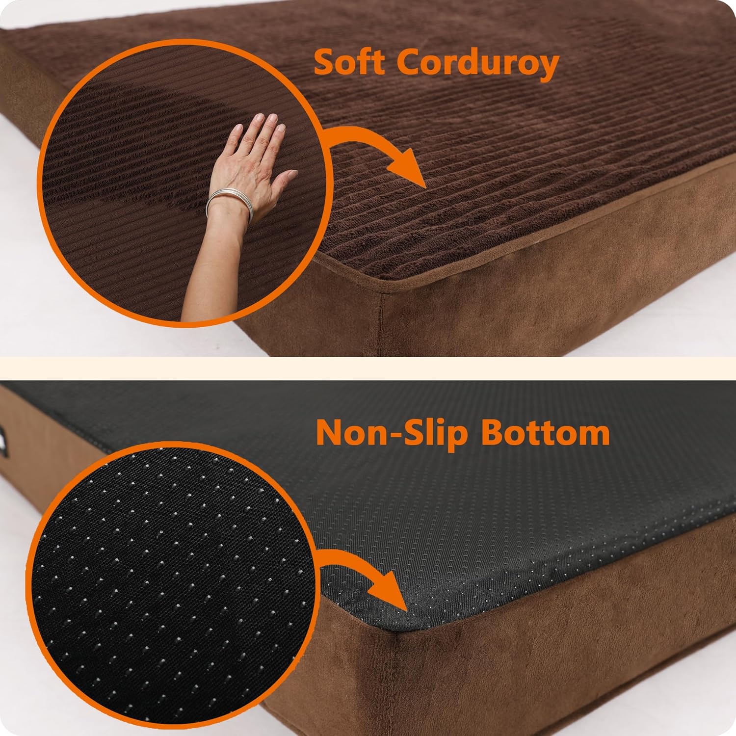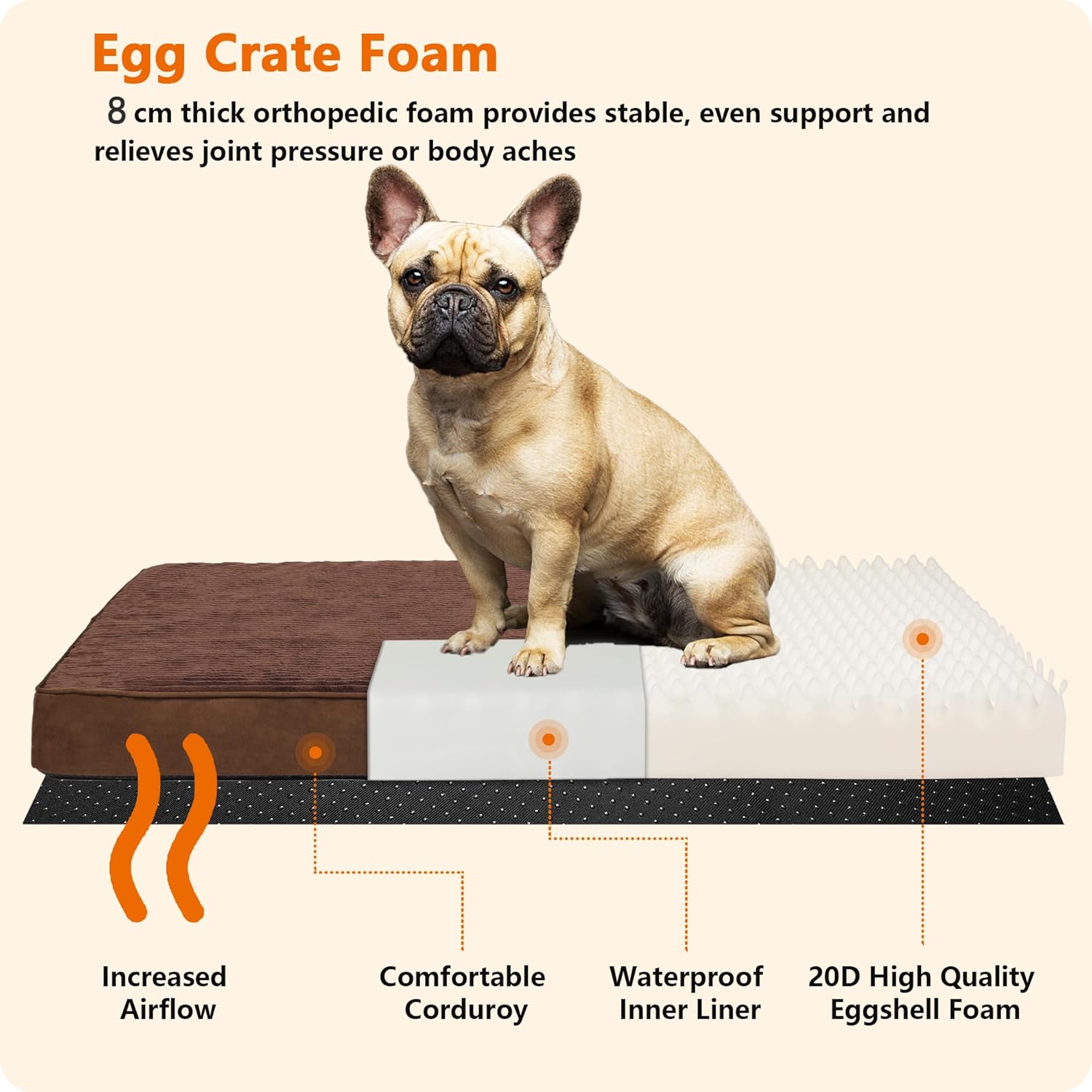 • 【Стремете се към комфорт】Нашето ортопедично легло за кучета е пълно с пяна от картонена кутия за яйца, която осигурява повече мекота и опора в сравнение с конвенционалните гъбени легла. Възглавницата с дебелина 10 см осигурява равномерно разпределение на теглото и осигурява комфорт за ставите на вашето куче, висококачествен сън.