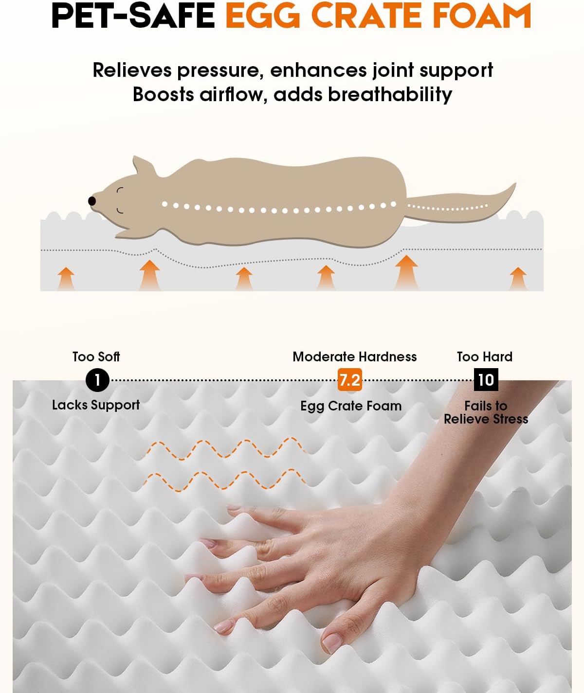 • ОРТОПЕДИЧНА ПОДДРЪЖКА: Вълнообразната структура от пяна с форма на яйцевидна черупка се адаптира към контурите на тялото на домашния любимец, облекчава ставите и точките на натиск и насърчава дълбокия сън.