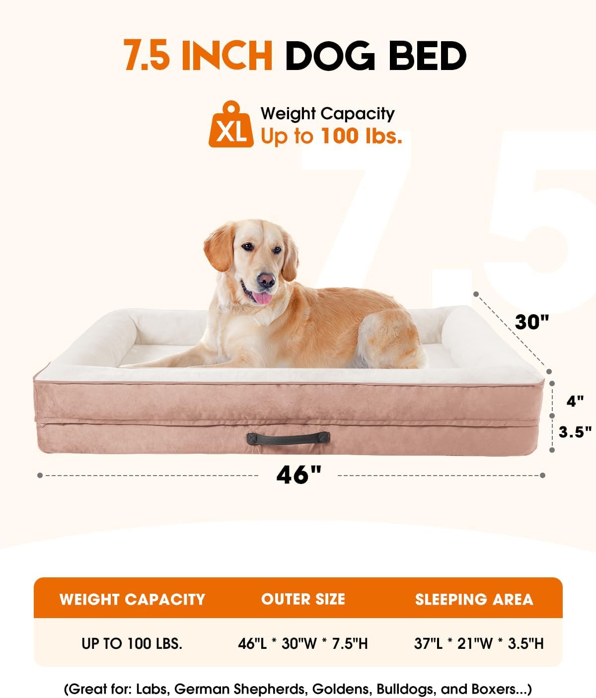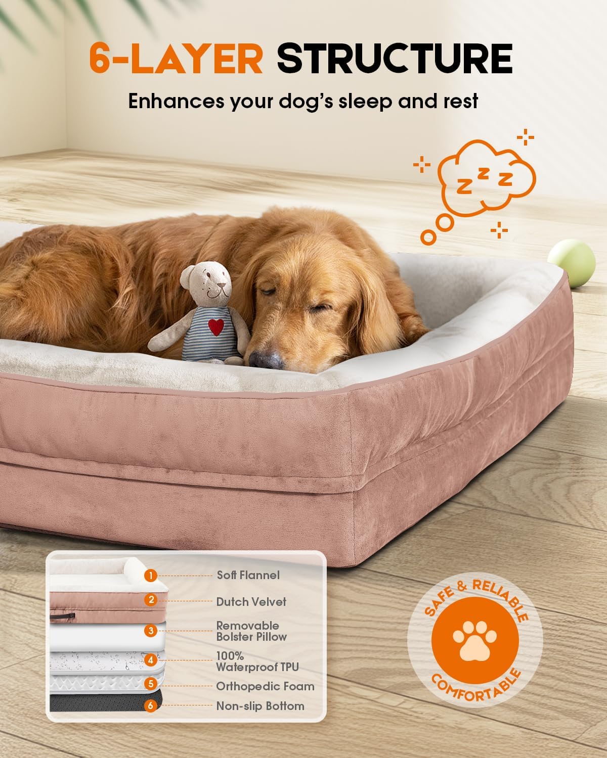 Ортопедично легло за кучета XL, кошница за кучета, която може да се пере, с яйцевидна пяна, водоустойчив диван за кучета с нехлъзгаща се долна страна и четиристранна възглавница (розово, 117 x 76 x 19 см)