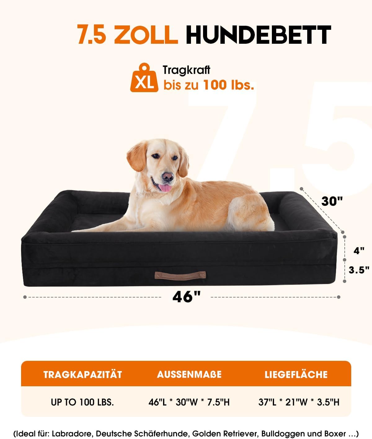 Ортопедично легло за кучета XL, кошница за кучета, която може да се пере, с яйцевидна пяна, водоустойчив диван за кучета с неплъзгаща се долна страна и четиристранна възглавница (черно, 117 x 76 x 19 см)
