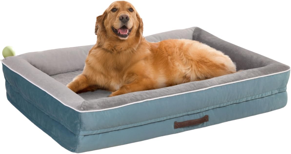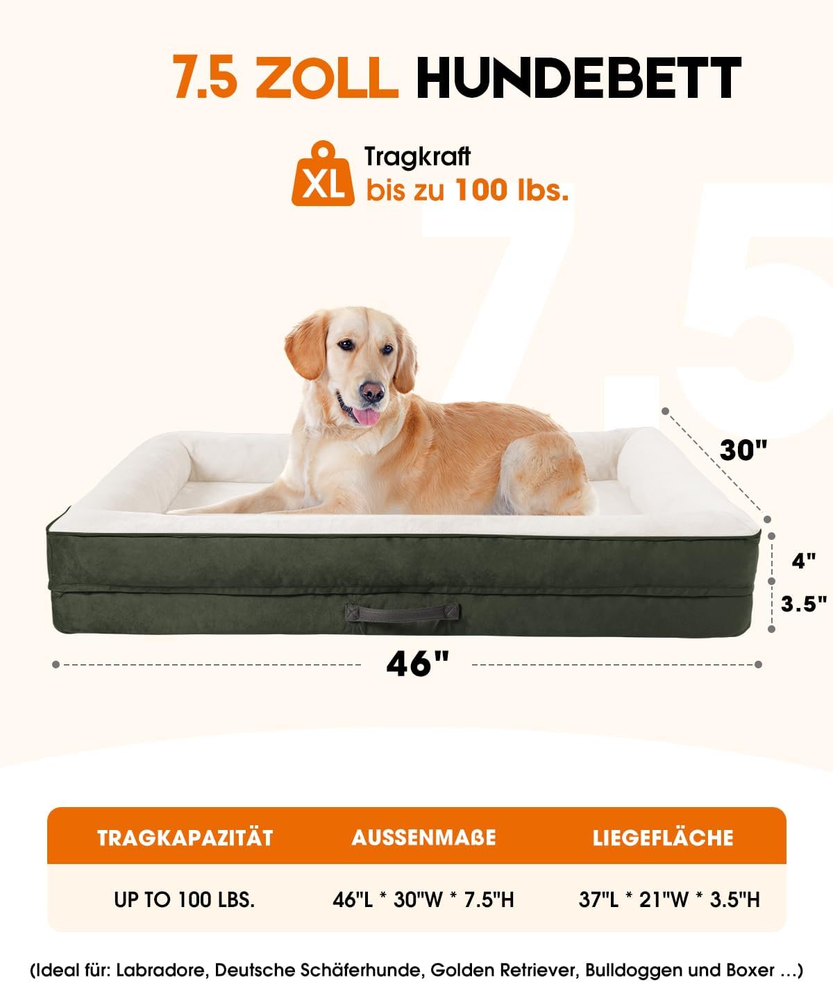 Ортопедично легло за кучета XL, кошница за кучета, която може да се пере, с яйцевидна пяна, водоустойчив диван за кучета с неплъзгаща се долна страна и четиристранна възглавница (маслинено сиво, 117 x 76 x 19 см)