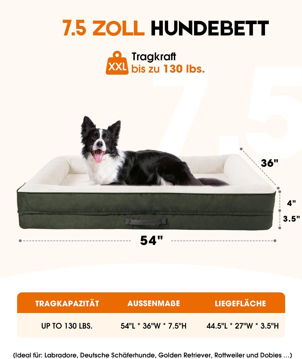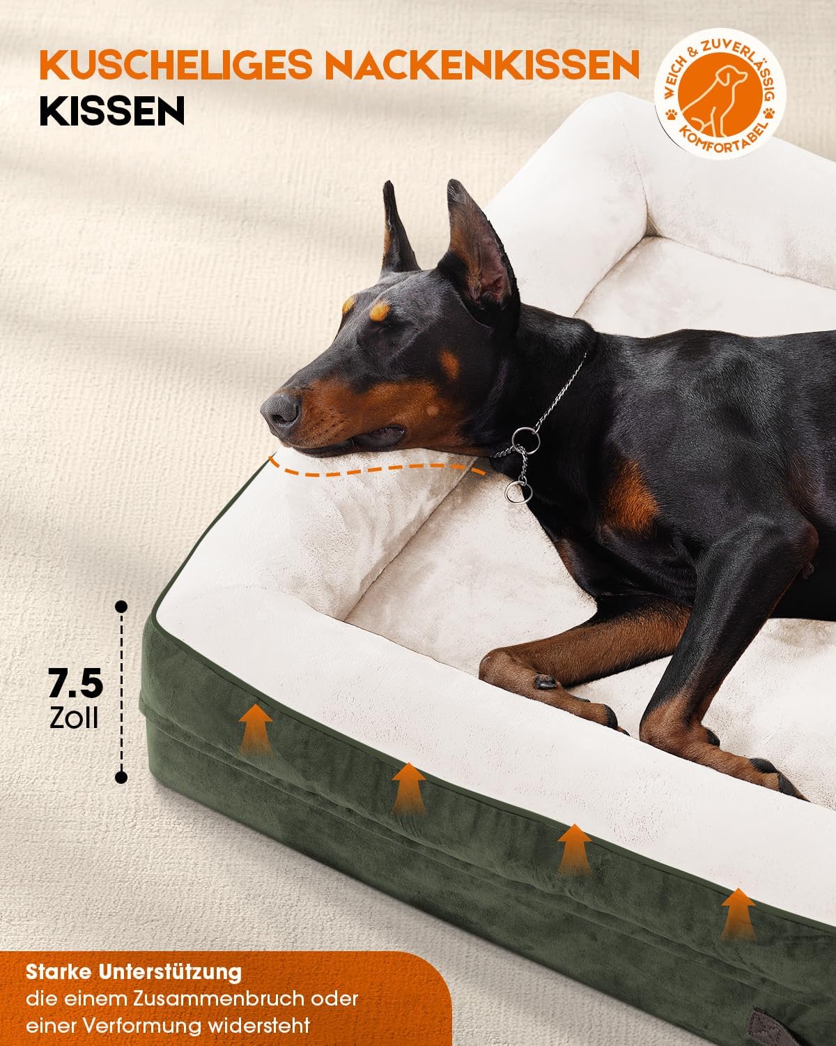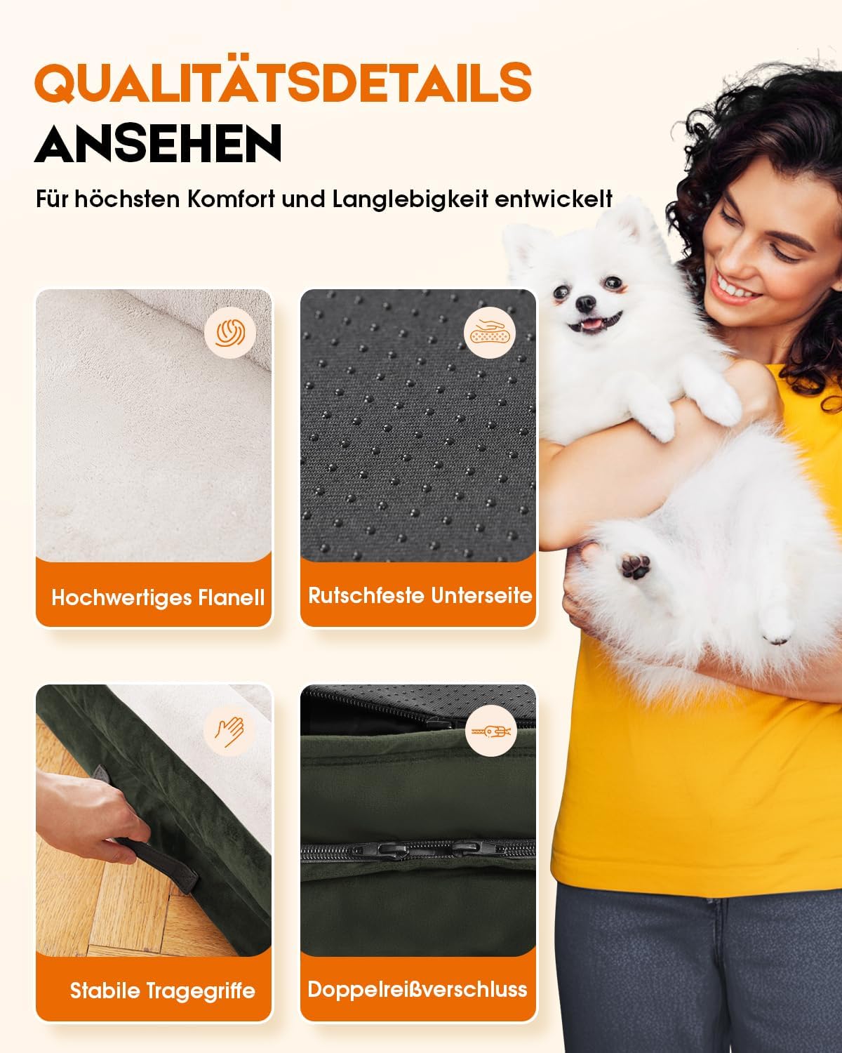 Ортопедично легло за кучета XXL, кошница за кучета, която може да се пере, с яйцевидна пяна, водоустойчив диван за кучета с неплъзгаща се долна страна и четиристранна възглавница (маслинено сиво, 137 x 91 x 19 см)