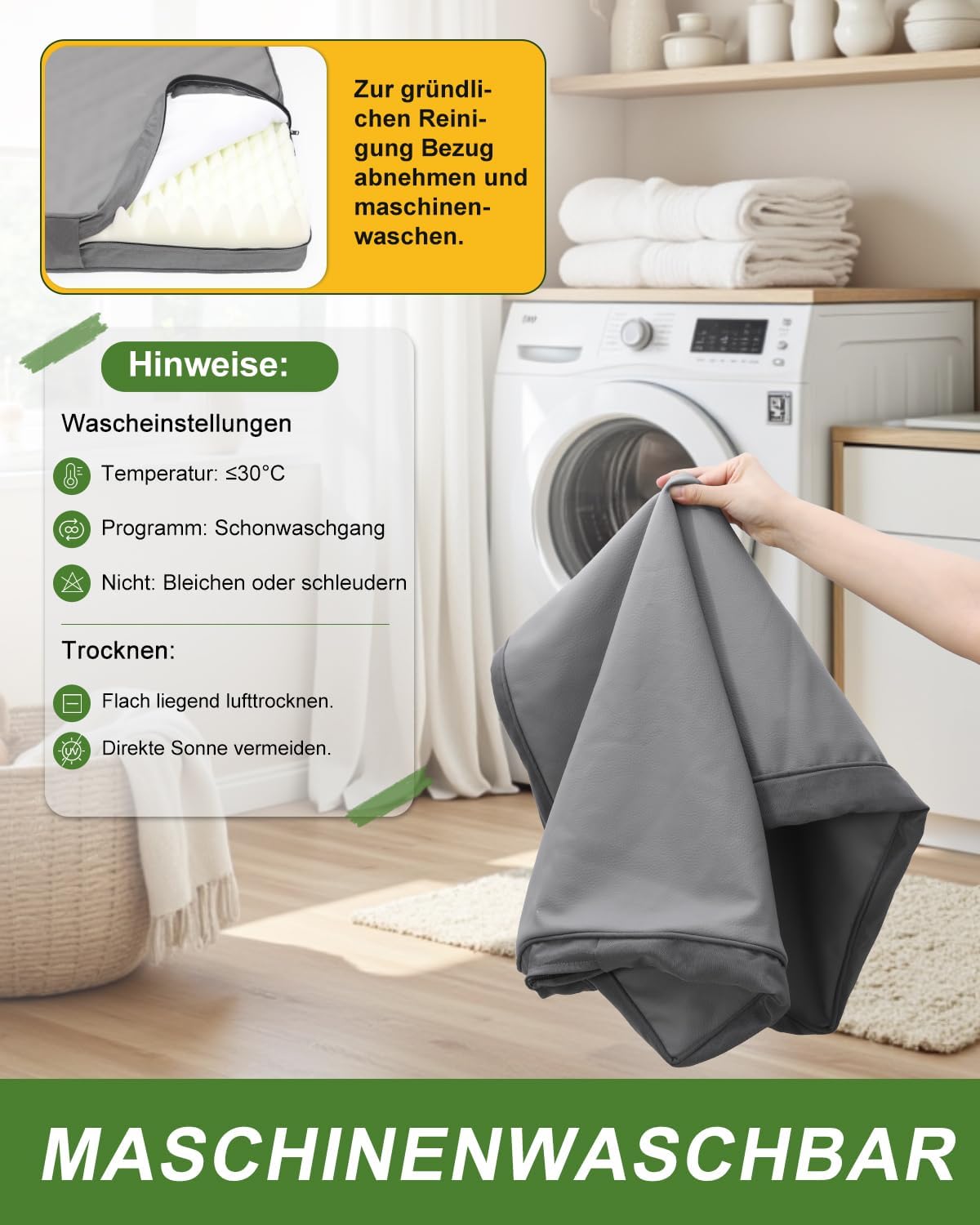 • Лесно почистване: устойчивата на косъм кучешка постелка от изкуствена кожа отблъсква козината и мръсотията - дори петната изчезват за нула време! Със сваляем калъф и скрит L-образен цип (високо качество, лесен за употреба) за бързо отстраняване. Основно почистване? Покривало в пералня - Забележка: не сушете на палещо слънце! Сушете на ниска температура или оставете да изсъхне на добре проветриво място.