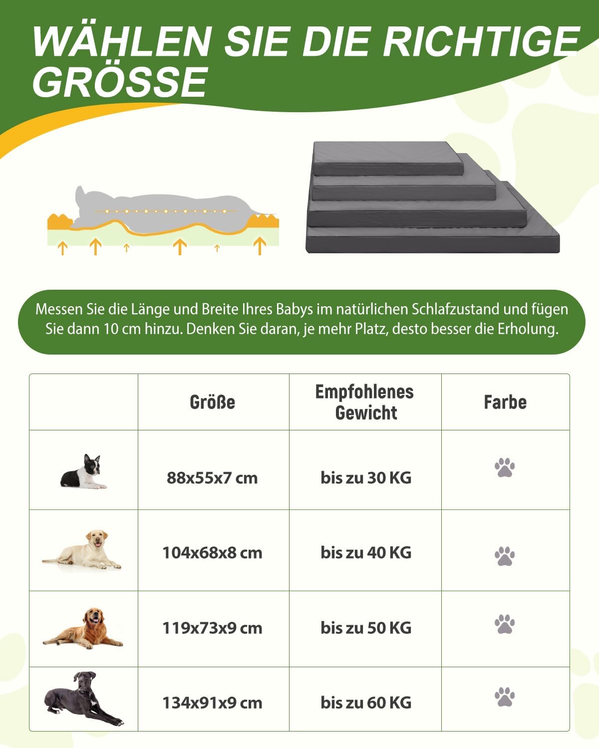 • РАЗМЕРИ: Това кучешко легло се предлага в няколко размера - изберете според размера и теглото на вашето куче. СЪВЕТИ ЗА ПЪРВА УПОТРЕБА: Поставете вакуумно опакованото кучешко легло в хоризонтално положение за 24-48 часа след разопаковане, така че пяната да се разгъне напълно. Скоро вашето куче ще открие новото си любимо място.
