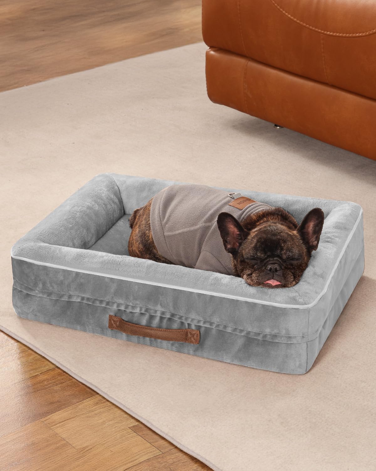 Ортопедично легло за кучета, за средни кучета, кошница за кучета, която може да се пере, с яйцевидна пяна, водоустойчив диван за кучета с неплъзгаща се долна страна и четиристранна възглавница (светло сиво, 61 x 46 x 15 см)
