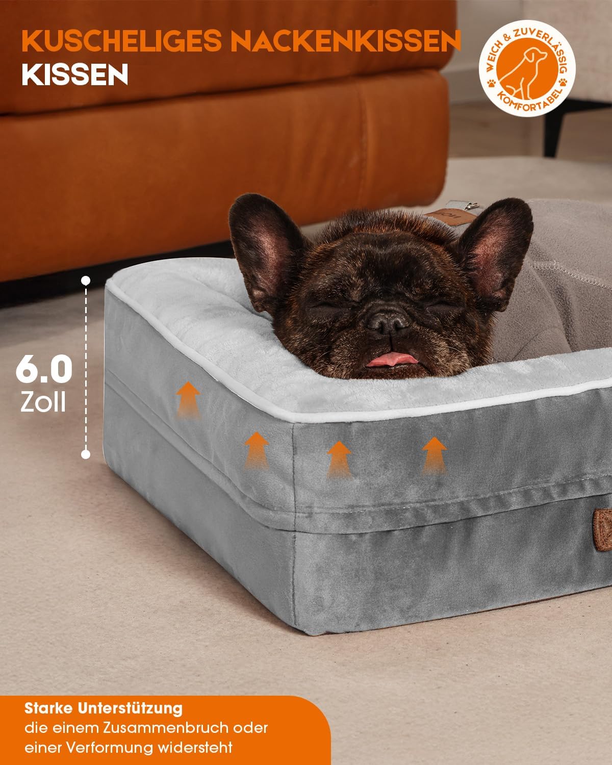 • Широка гама от приложения и размери: независимо дали е в хол, спалня, двор или къмпинг, това легло за кучета с възглавница осигурява на вашия домашен любимец удобно място за почивка. Предлага се в различни размери за кучета с различна големина.