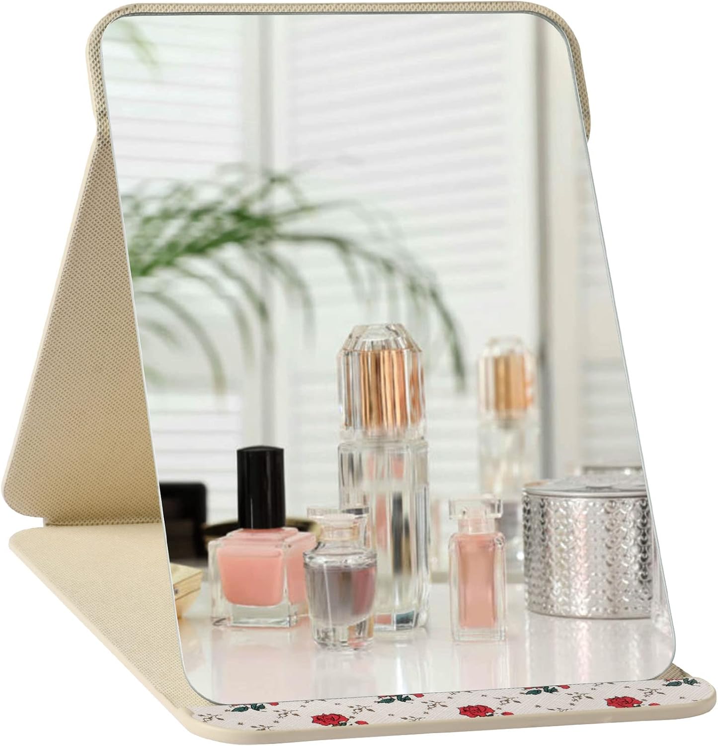 OSDUE Сгъваемо огледало за грим, преносимо козметично огледало, сгъваемо огледало за пътуване за настолна, ръчна, домашна и пътна употреба (голямо 20,5 x 15 см)