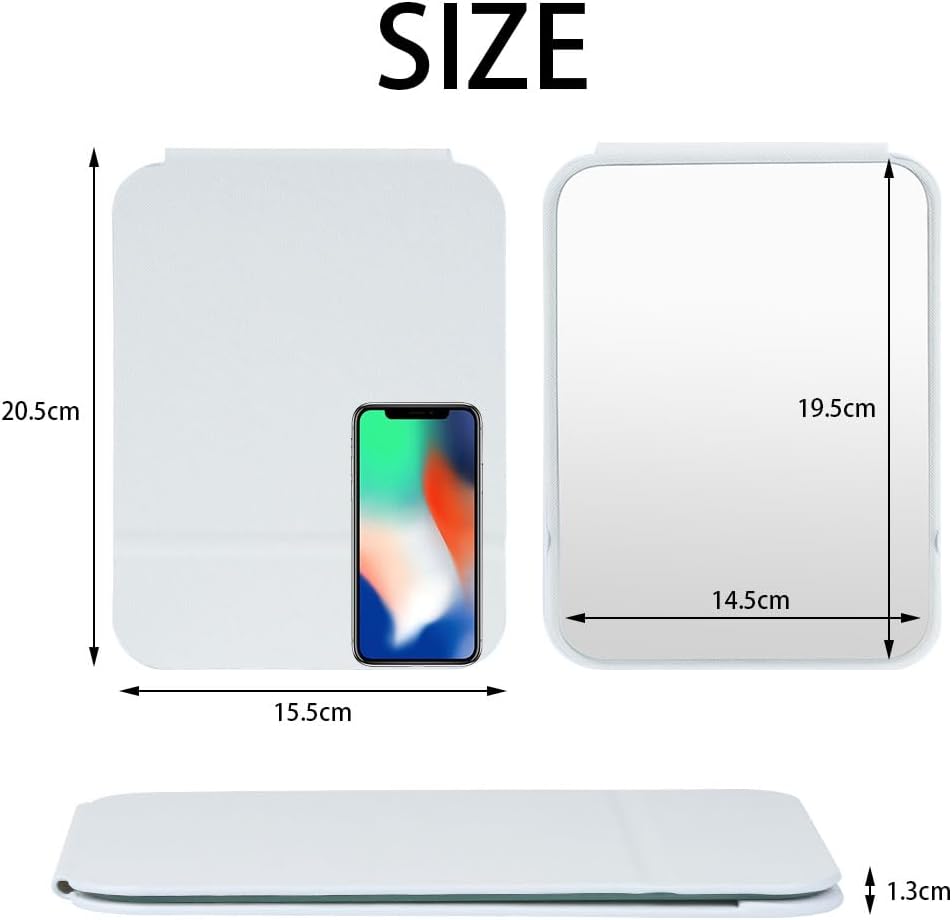 • Практичен дизайн: Изработен от PU кожа и HD стъкло. Минималистичен сгъваем дизайн, но много стилен. Размер: приблизително 20,5x15 см. Прозрачен и достатъчно голям, за да се вижда цялото лице.