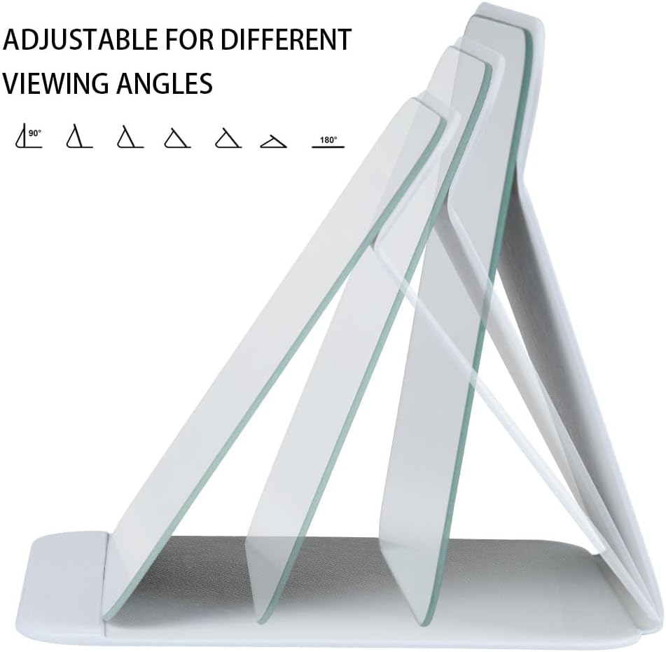 • Многофункционално: Това огледало за пътуване се предлага с регулируем държач. Сгъваемият дизайн го прави лесно за транспортиране и поддръжка. Може да стои стабилно на различни плотове, идеално за бани, спални, скринове, бюра, маси и др.