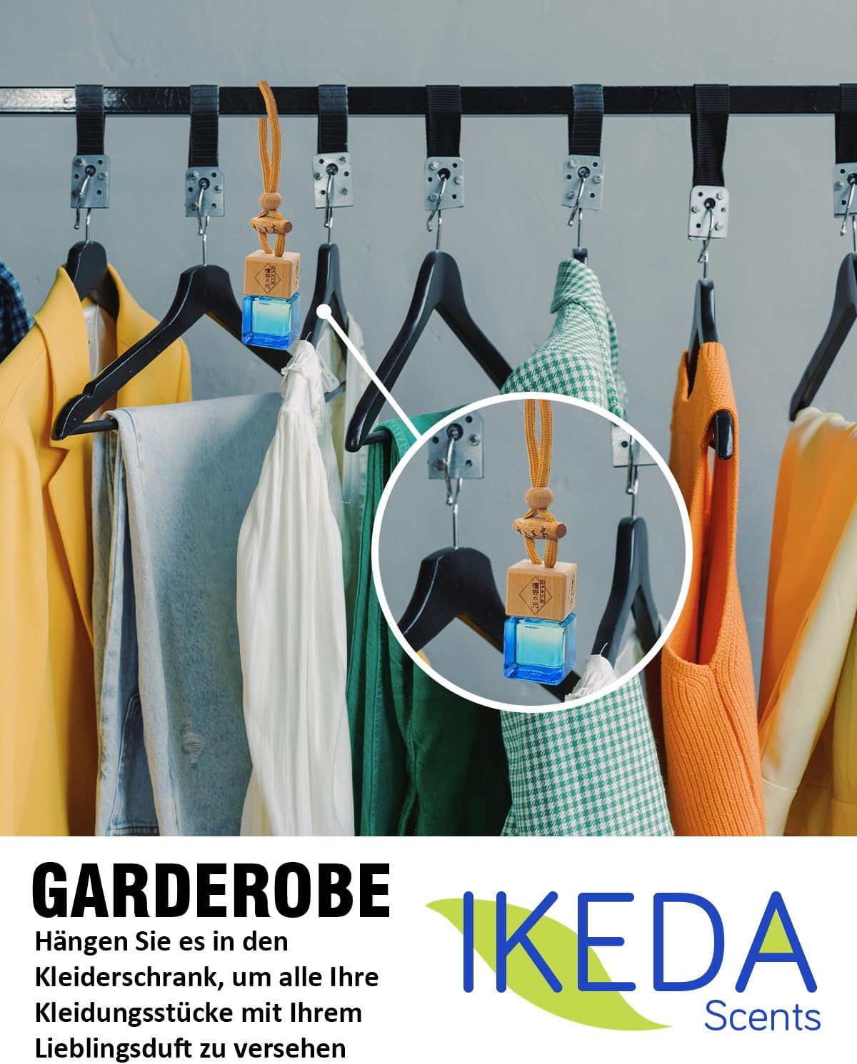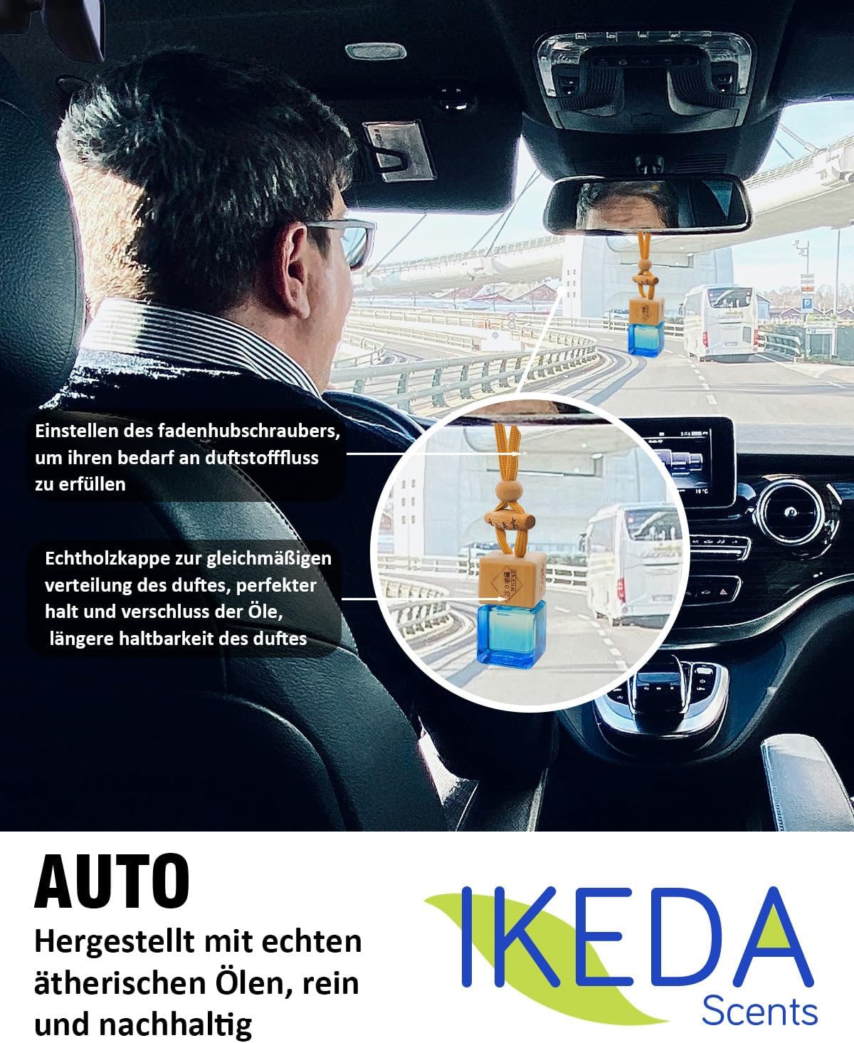 • ВИСОКОКАЧЕСТВЕН МАТЕРИАЛ: Освежителят за въздух Ikeda е с удебелено стъклено тяло, което го прави здрав, тънък и нечуплив. Капакът е изработен от истинско дърво, което е екологично и предлага добра въздухопропускливост. Специално е формулиран, за да излъчва силен аромат за дълъг период от време. Закачете го на огледалото за обратно виждане, за да подобрите интериора на колата си и да разпространите приятен аромат. Впечатлете всеки, който влезе в колата ви, с възхитителния му аромат!