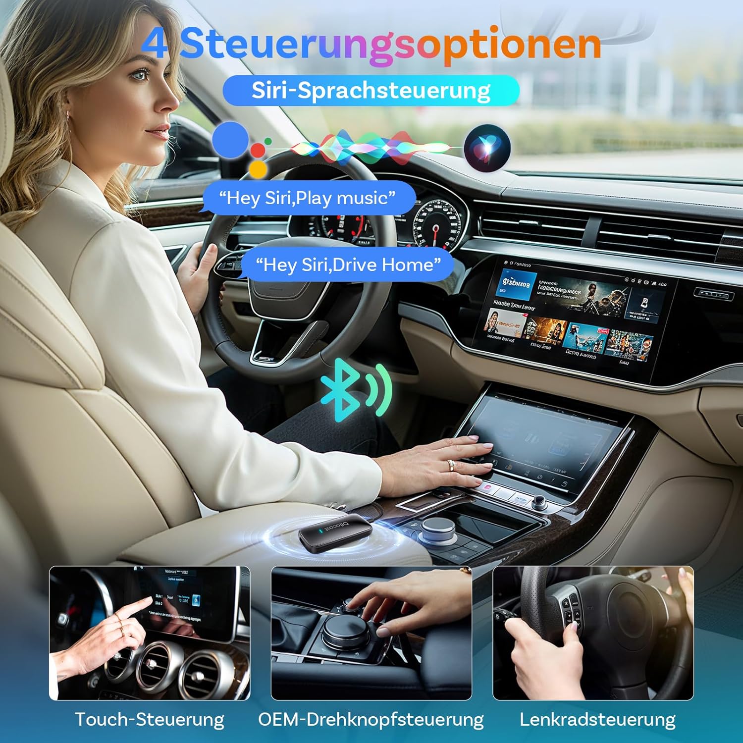 • 【Двойно по-бърза, ултрастабилна връзка】Оборудван с двубандов Wi-Fi 6, 5G чип и Bluetooth 5.4 технология, безжичният адаптер CarPlay предлага светкавично бърза и стабилна връзка. Мощните 4GB RAM и 32GB вътрешна памет осигуряват безпроблемна работа. Използвайте CarPlay/Android Auto безжично, докато сте свързани с точката за достъп на вашия смартфон за достъп до интернет и навигация – за забавление и навигация в едно.