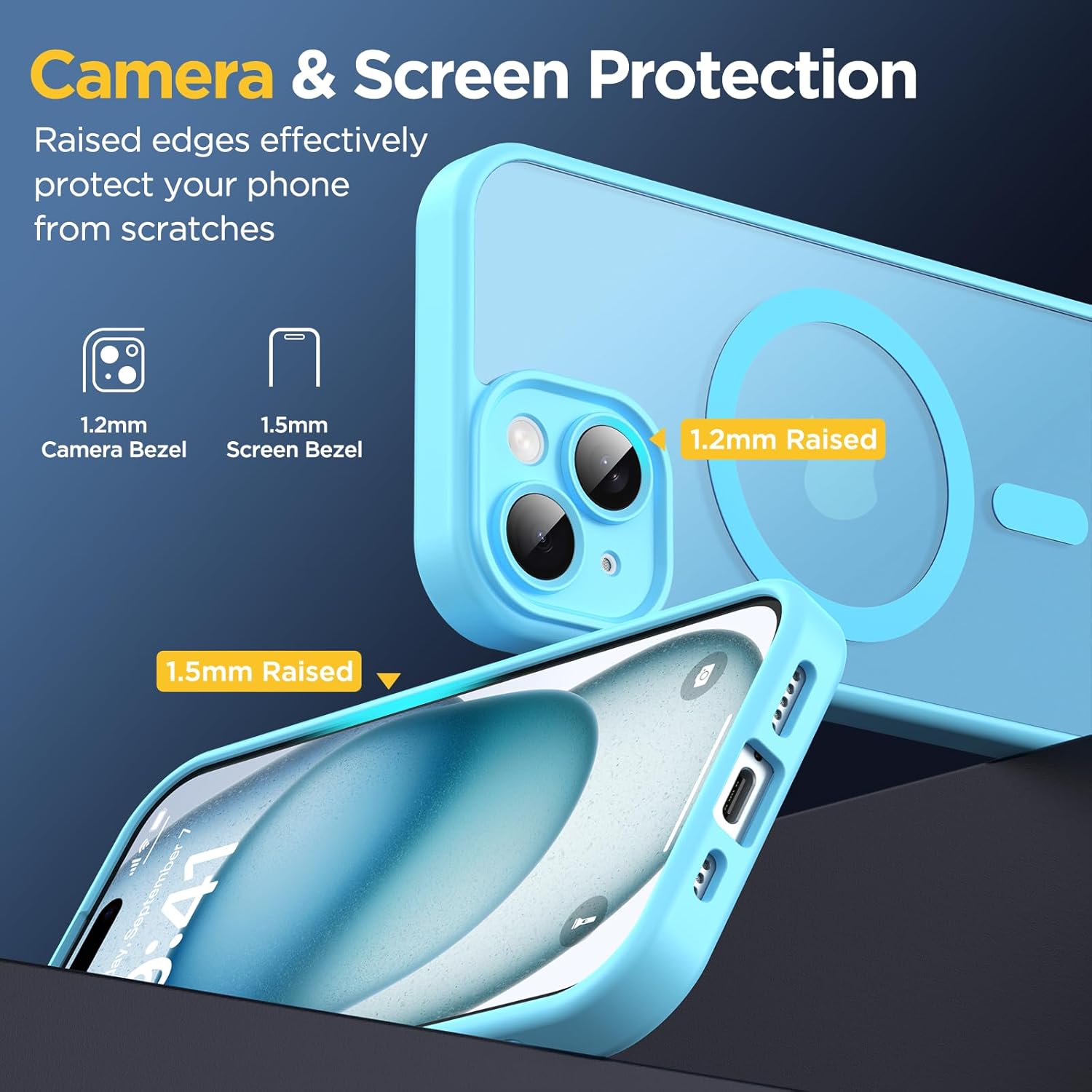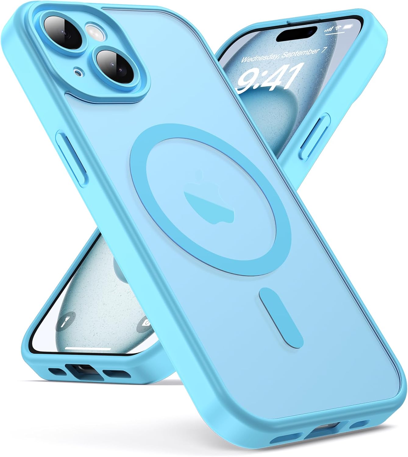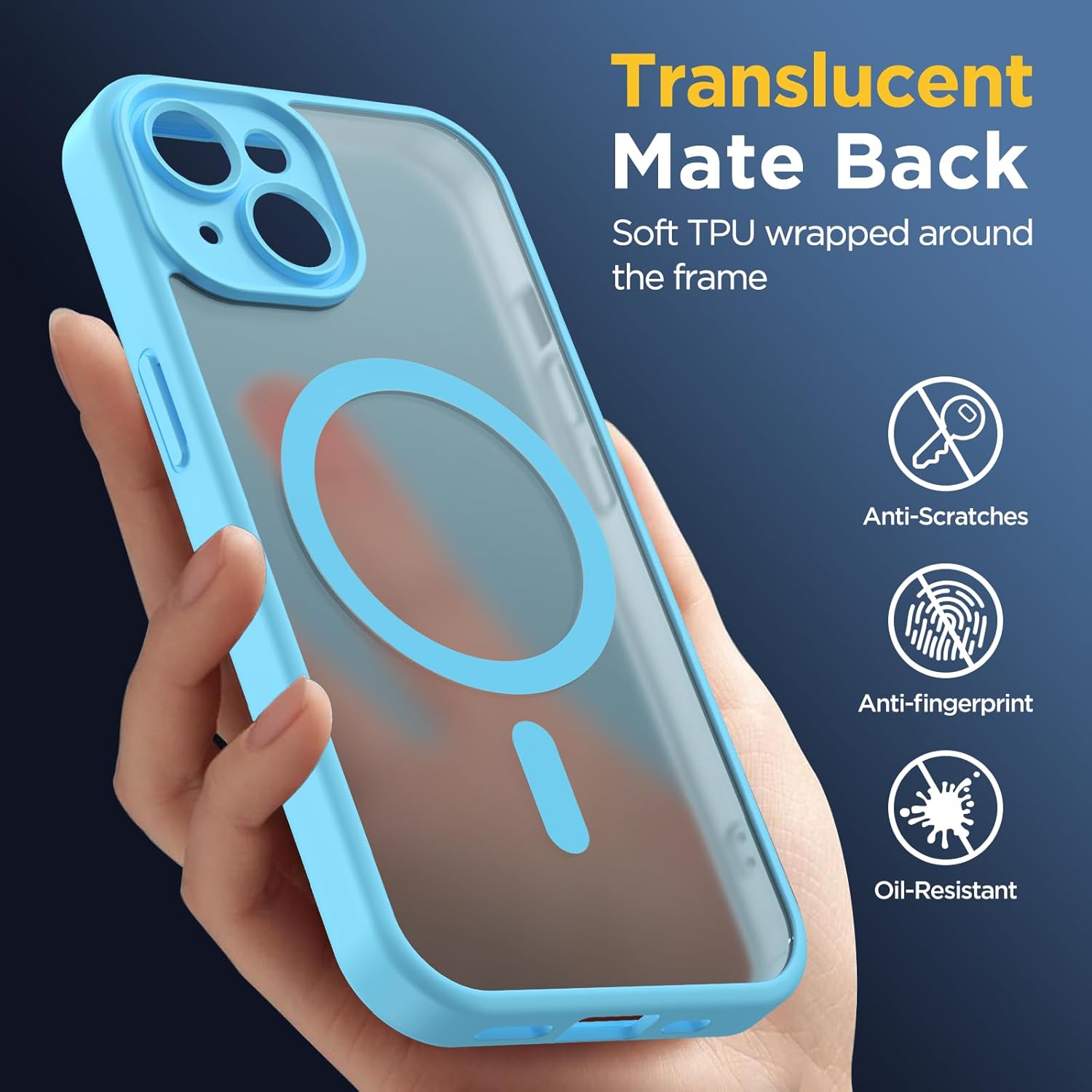 Oududianzi - Калъф за iPhone 15, съвместим с Magsafe, калъф за мобилен телефон, прозрачен матов PC гръб, TPU силиконов защитен калъф, защита на камерата, прозрачен матов, устойчив на надраскване