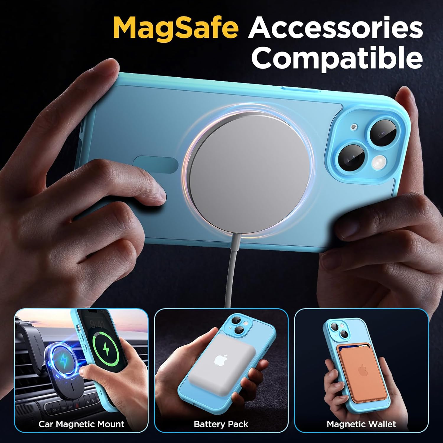 • Функция за магнитно засмукване: Мощният вграден магнит подобрява магнитната връзка и осигурява автоматично подравняване, като е съвместим с всички аксесоари MagSafe, като например магнитни зарядни устройства с вендуза, магнитни пакети с вендуза, магнитни държачи с вендуза и други. Независимо дали сте в ежедневието или пътувате, можете да се насладите на практичността, която калъфът носи със себе си.