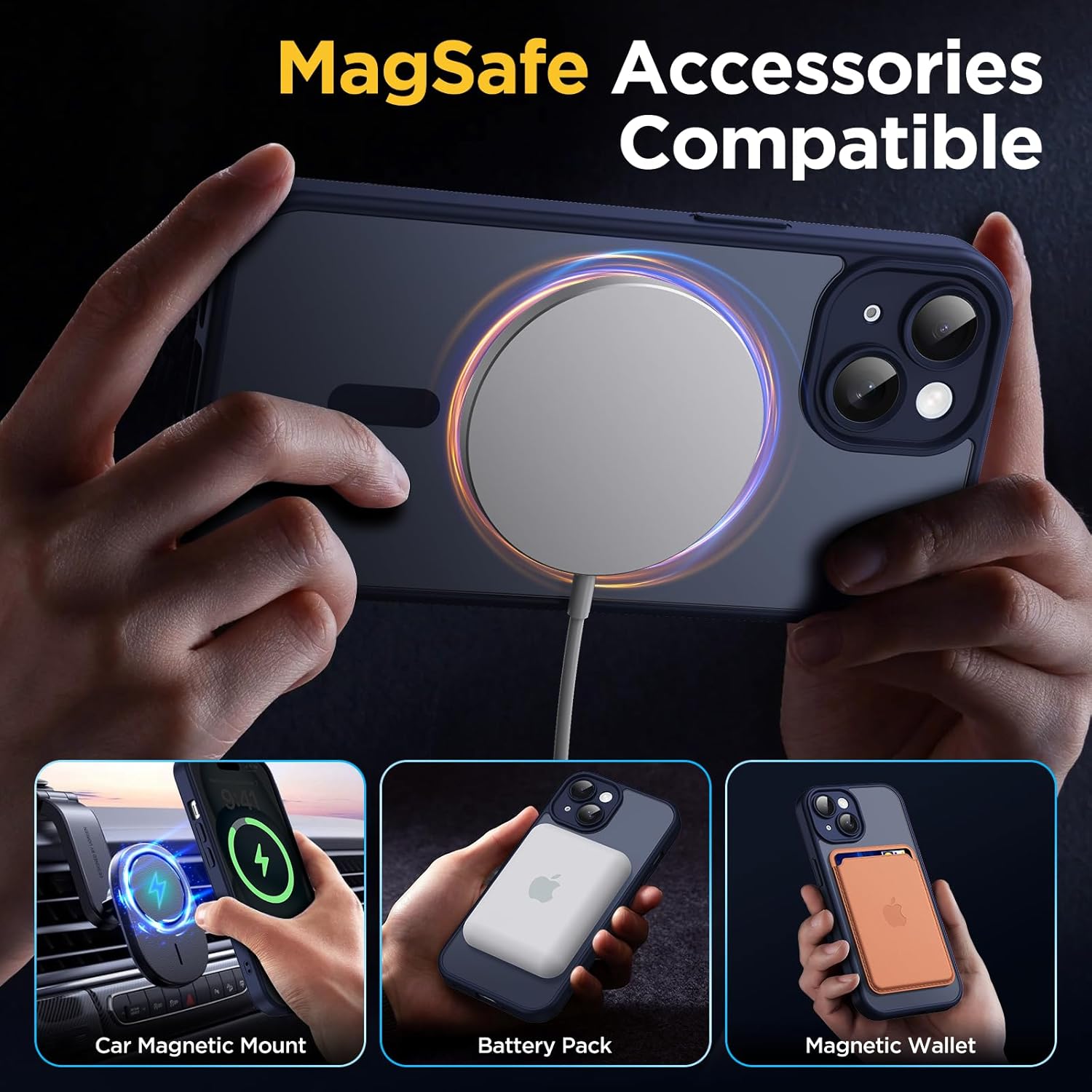 • Функция за магнитно засмукване: Мощният вграден магнит подобрява магнитната връзка и осигурява автоматично подравняване, като е съвместим с всички аксесоари MagSafe, като например магнитни зарядни устройства с вендуза, магнитни пакети с вендуза, магнитни държачи с вендуза и други. Независимо дали сте в ежедневието или пътувате, можете да се насладите на практичността, която калъфът носи със себе си.
