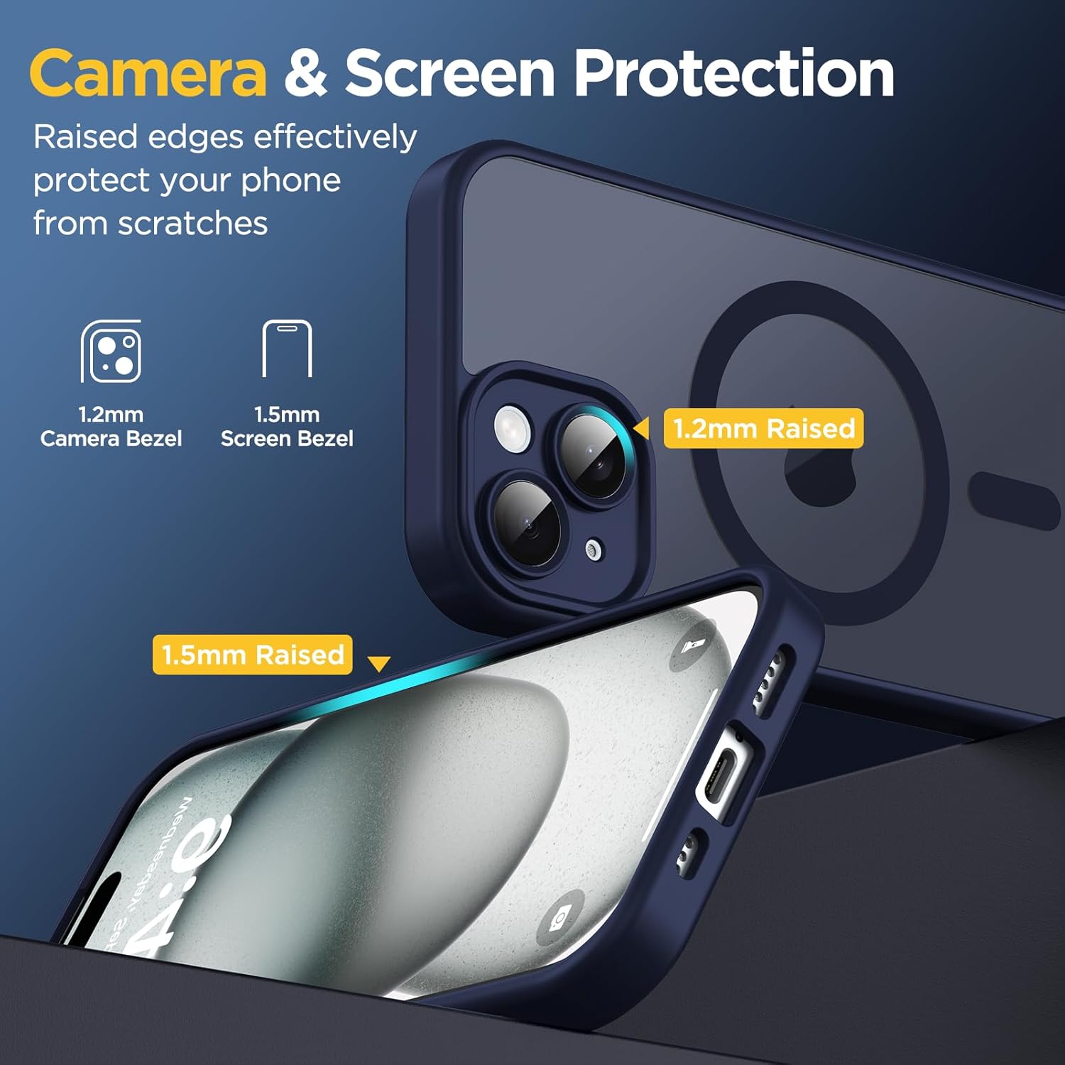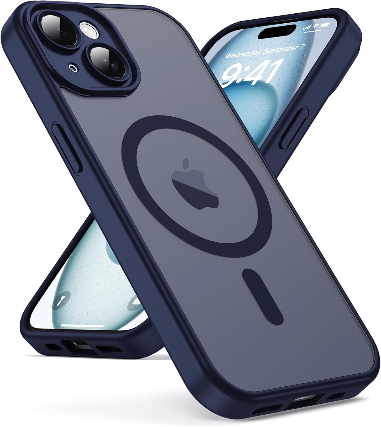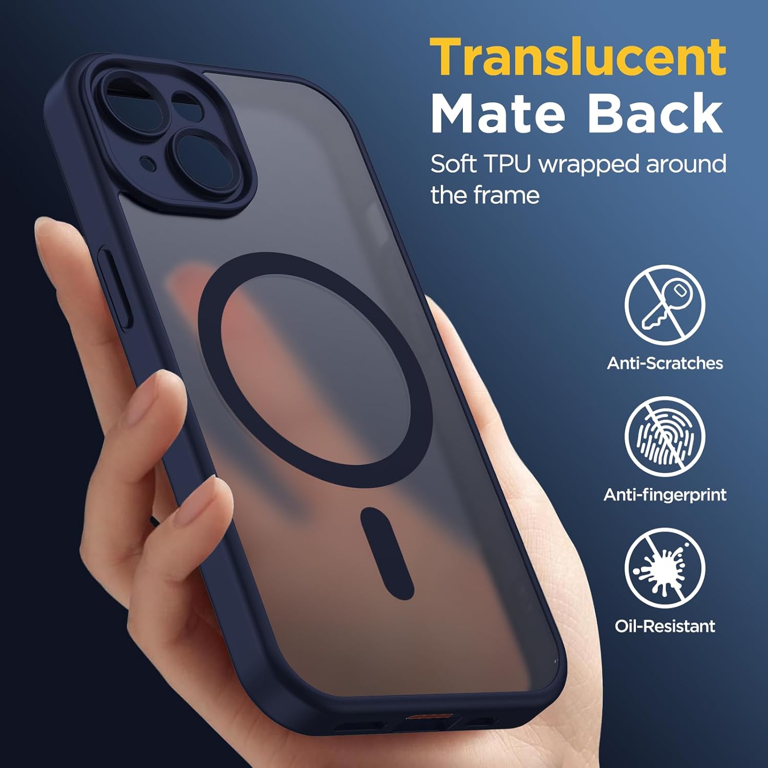 Oududianzi - Калъф за iPhone 15, съвместим с Magsafe, калъф за мобилен телефон, прозрачен матов PC гръб, TPU силиконов защитен калъф, защита на камерата, прозрачен матов, устойчив на надраскване