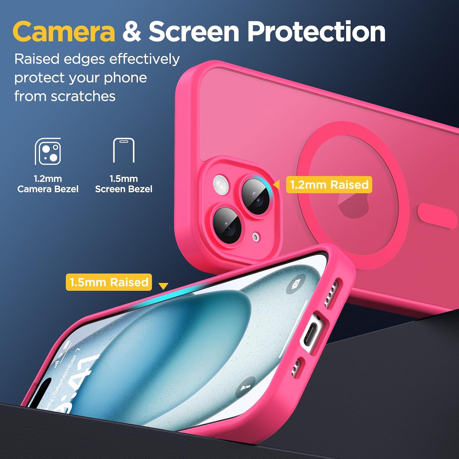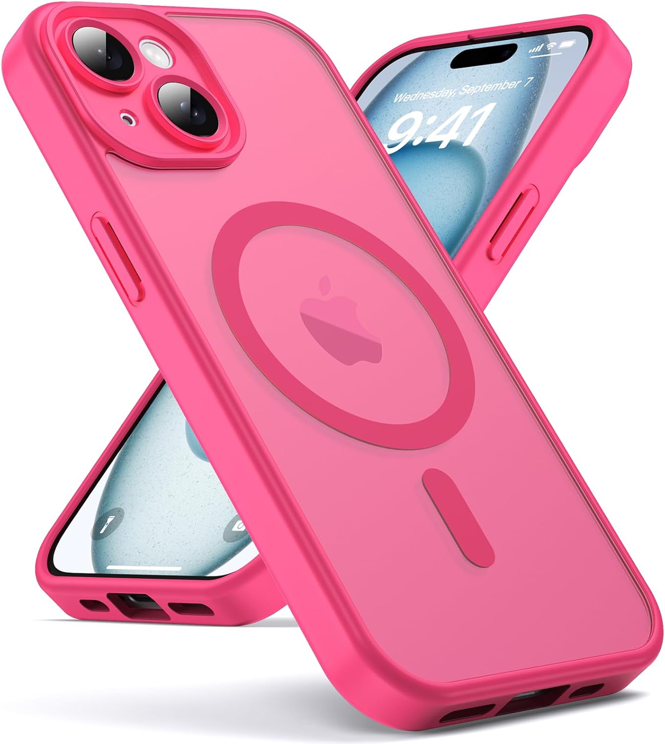 Oududianzi - Калъф за iPhone 15, съвместим с Magsafe, калъф за мобилен телефон, прозрачен матов PC гръб, TPU силиконов защитен калъф, защита на камерата, прозрачен матов, устойчив на надраскване