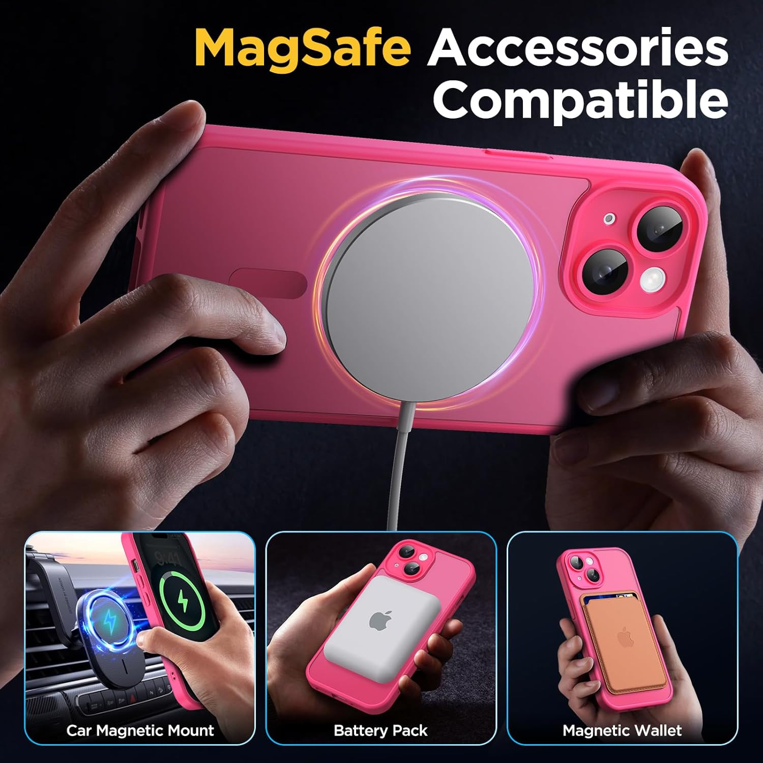 • Функция за магнитно засмукване: Мощният вграден магнит подобрява магнитната връзка и осигурява автоматично подравняване, като е съвместим с всички аксесоари MagSafe, като например магнитни зарядни устройства с вендуза, магнитни пакети с вендуза, магнитни държачи с вендуза и други. Независимо дали сте в ежедневието или пътувате, можете да се насладите на практичността, която калъфът носи със себе си.