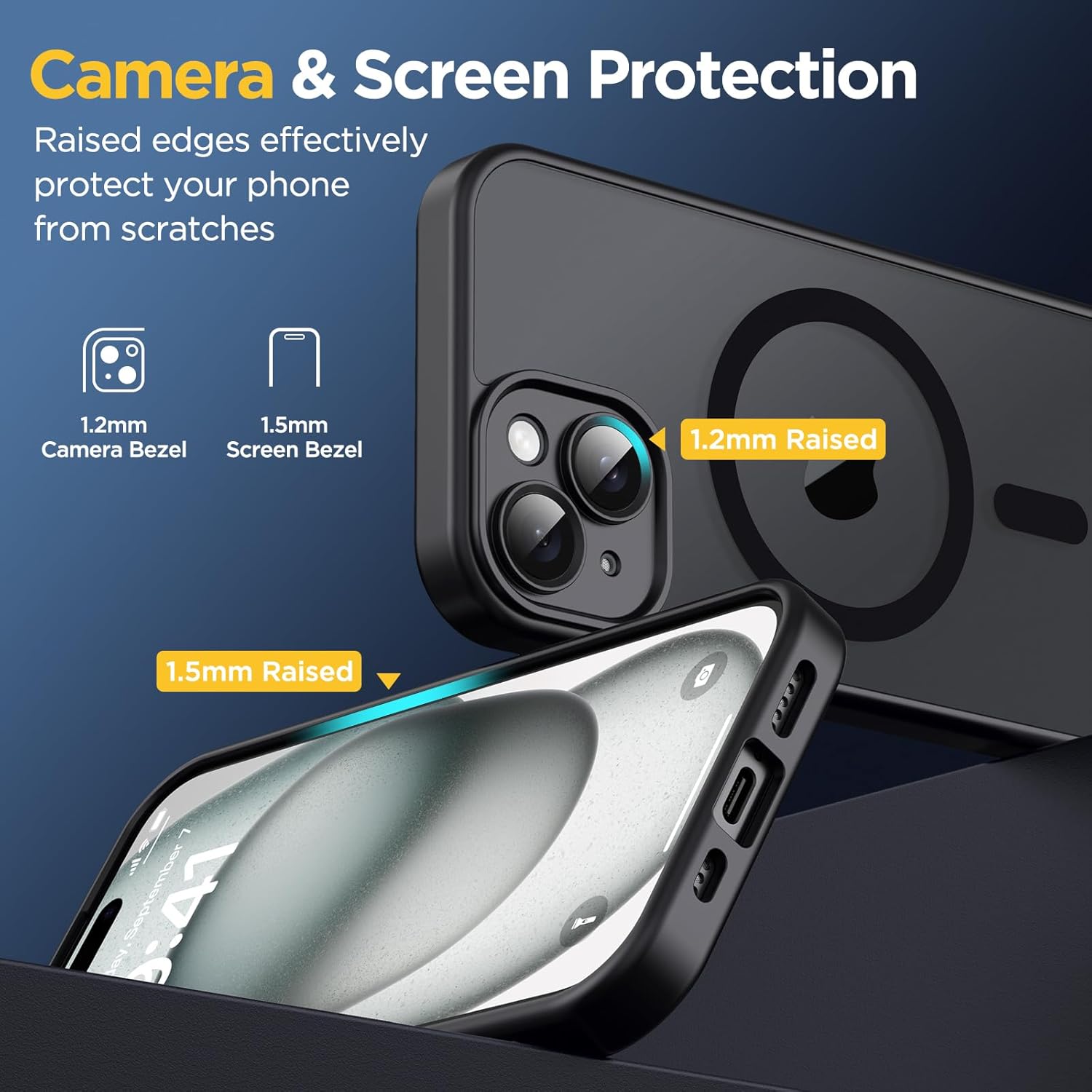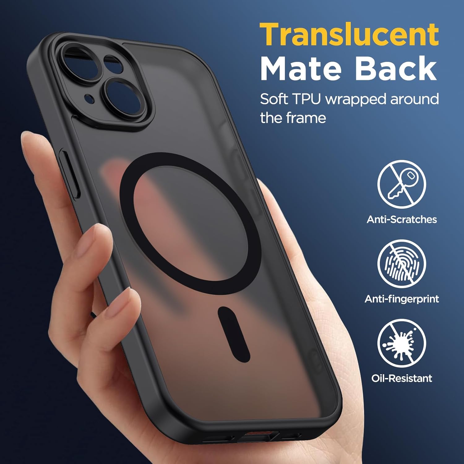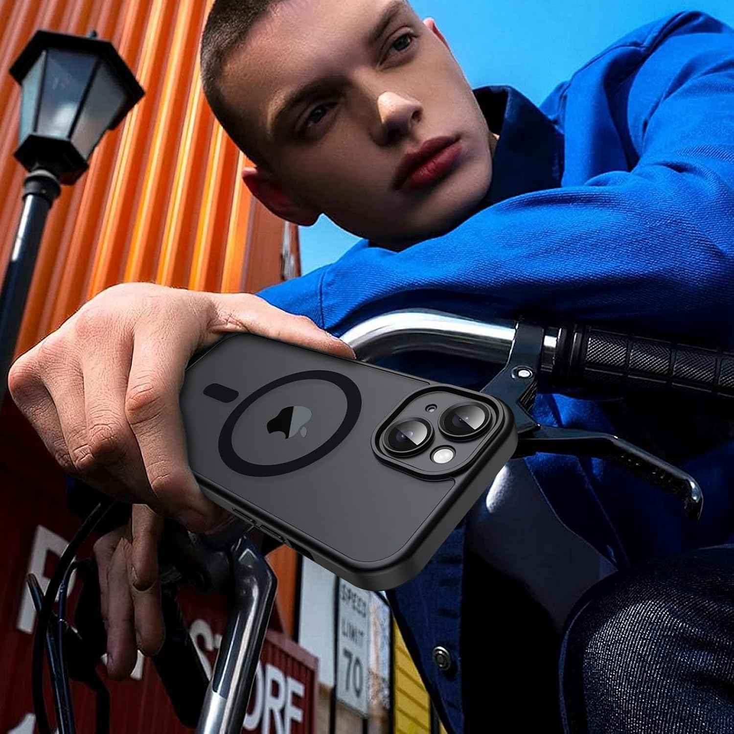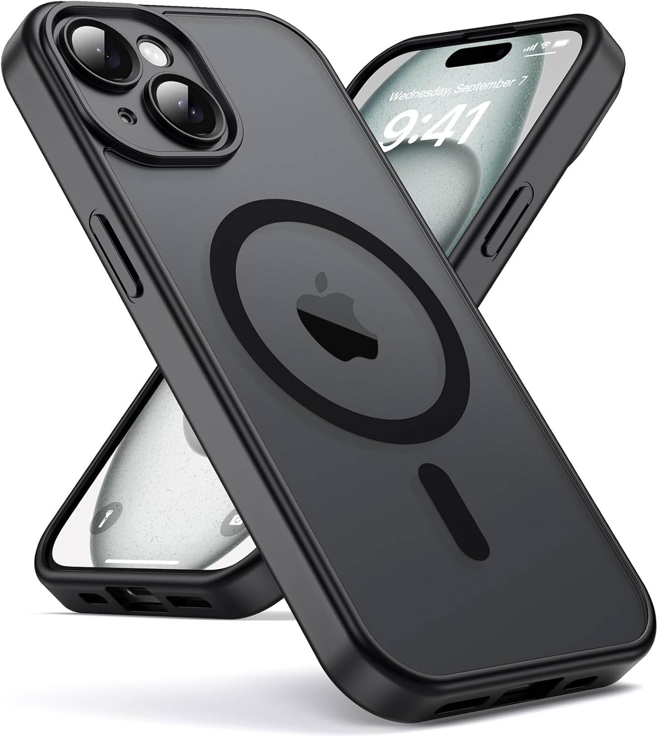 Oududianzi - Калъф за iPhone 15, съвместим с Magsafe, калъф за мобилен телефон, прозрачен матов PC гръб, TPU силиконов защитен калъф, защита на камерата, прозрачен матов, устойчив на надраскване