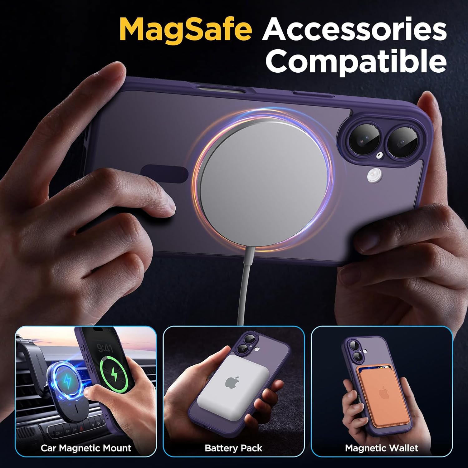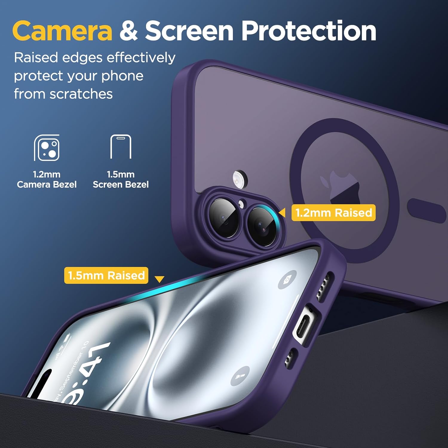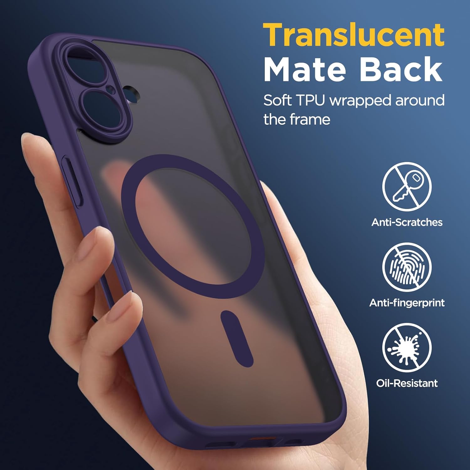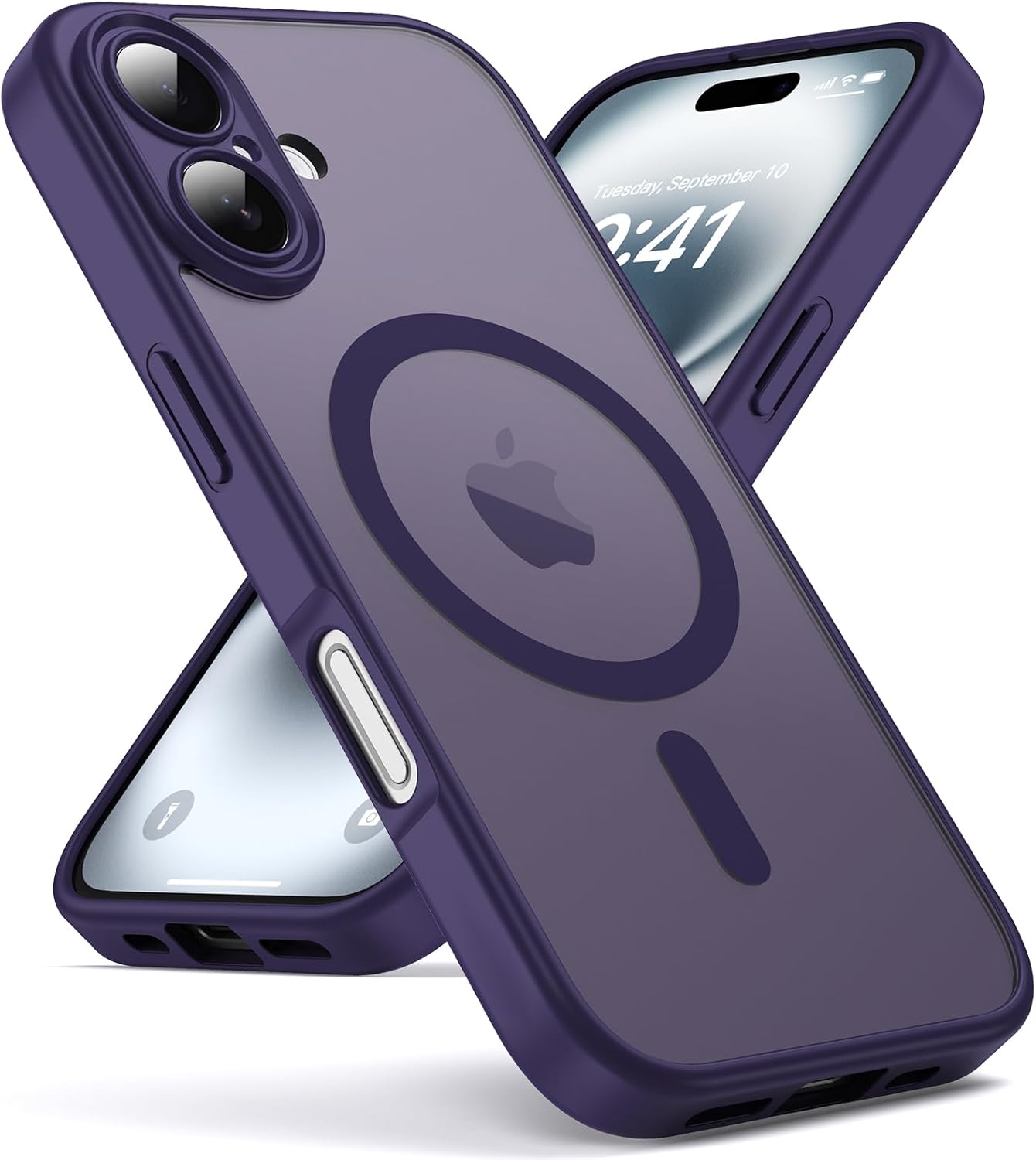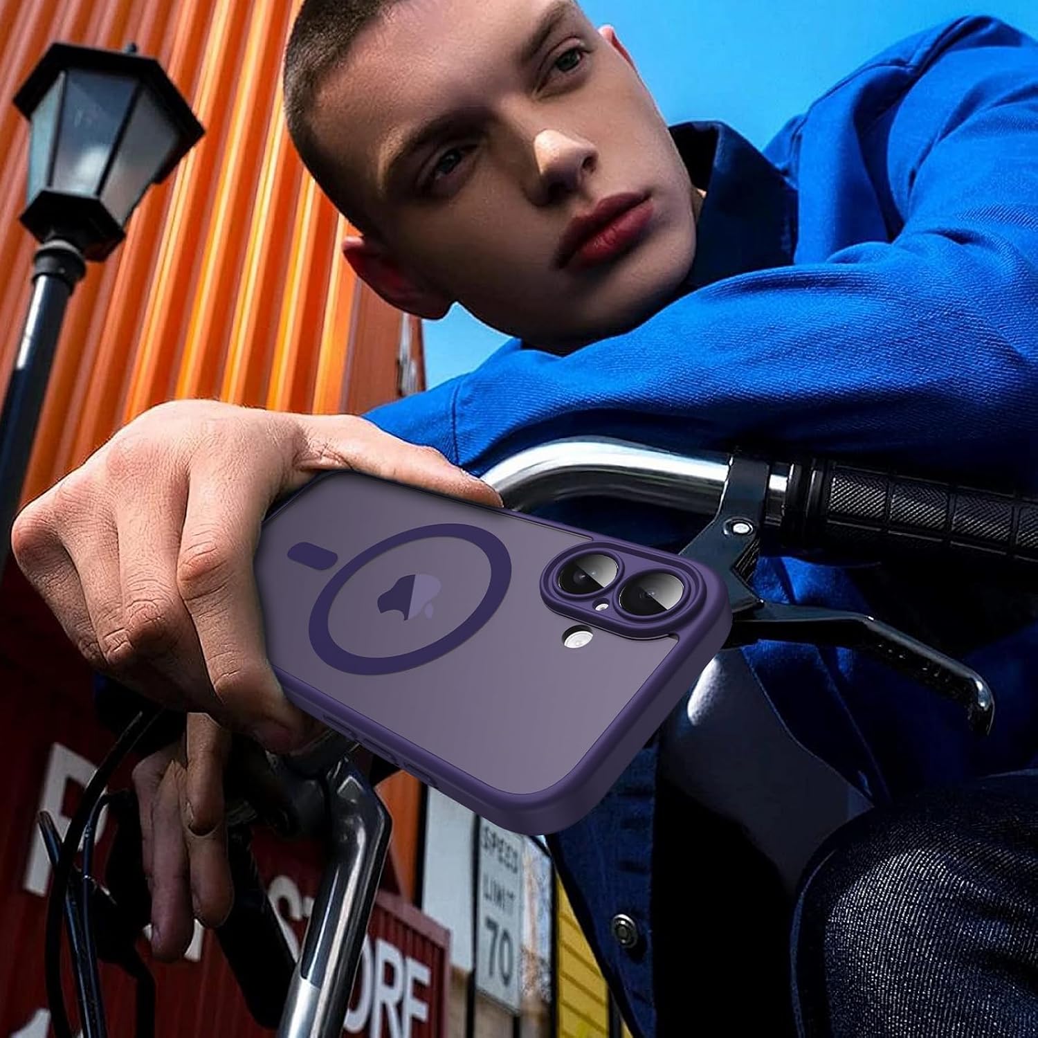 Oududianzi - Калъф за iPhone 16, съвместим с Magsafe, калъф за мобилен телефон, прозрачен матов PC гръб, TPU силиконов защитен калъф, защита на камерата, прозрачен матов, устойчив на надраскване, удароустойчив