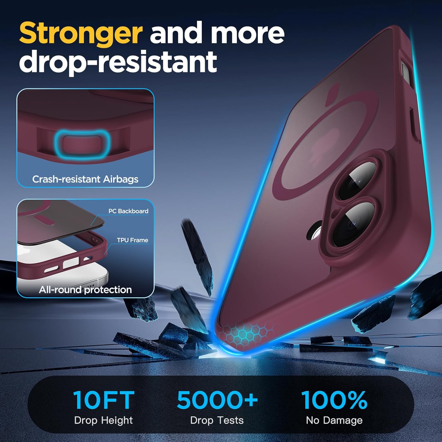 • [Военна защита от падане] Оборудвана с 4 удароустойчиви ъгъла на конструкцията и технология за 360° въздушни възглавници, подсилена с допълнително абсорбиране на удара. Ефективно абсорбира и разпределя силите на удара, като същевременно постига защита от военно ниво, като същевременно запазва лек и тънък профил.
